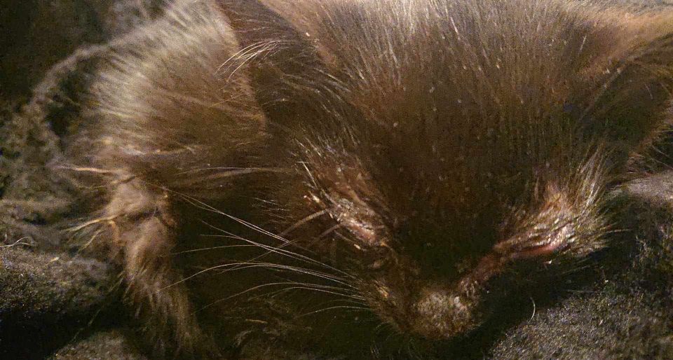 Ce petit loulou vient d’arriver chez nous. Il a été trouvé au milieu de la route . La dame a failli l’écraser 🙁 Heureusement elle a su réagir avant la catastrophe et  en plus a été directement chez notre vétérinaire pour les premiers soins. Son coryza est très avancé 🙁 . La vétérinaire ne sait pas si on pourra sauver ses yeux 🙁  Nous ferons bien entendu notre maximum et espérons de tout coeur que ça ira. Courage petit loulou, nous sommes là pour toi