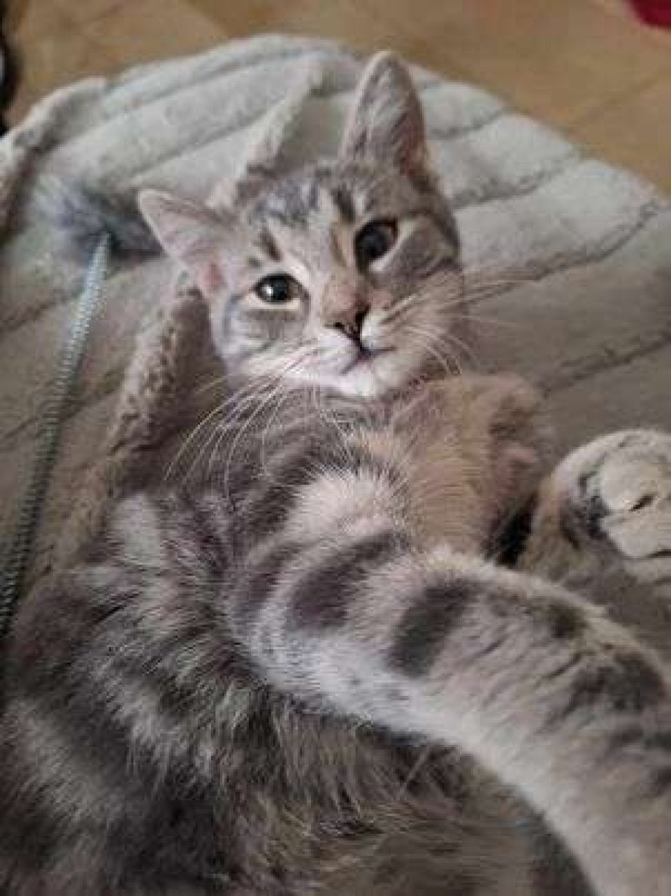 « Bonjour , je vous envois quelques photos de notre petite Dinah , elle est vraiment adorable une belle bouille d amour je suis vraiment content et tout se passe à merveille avec l’autre chat 😻😻«