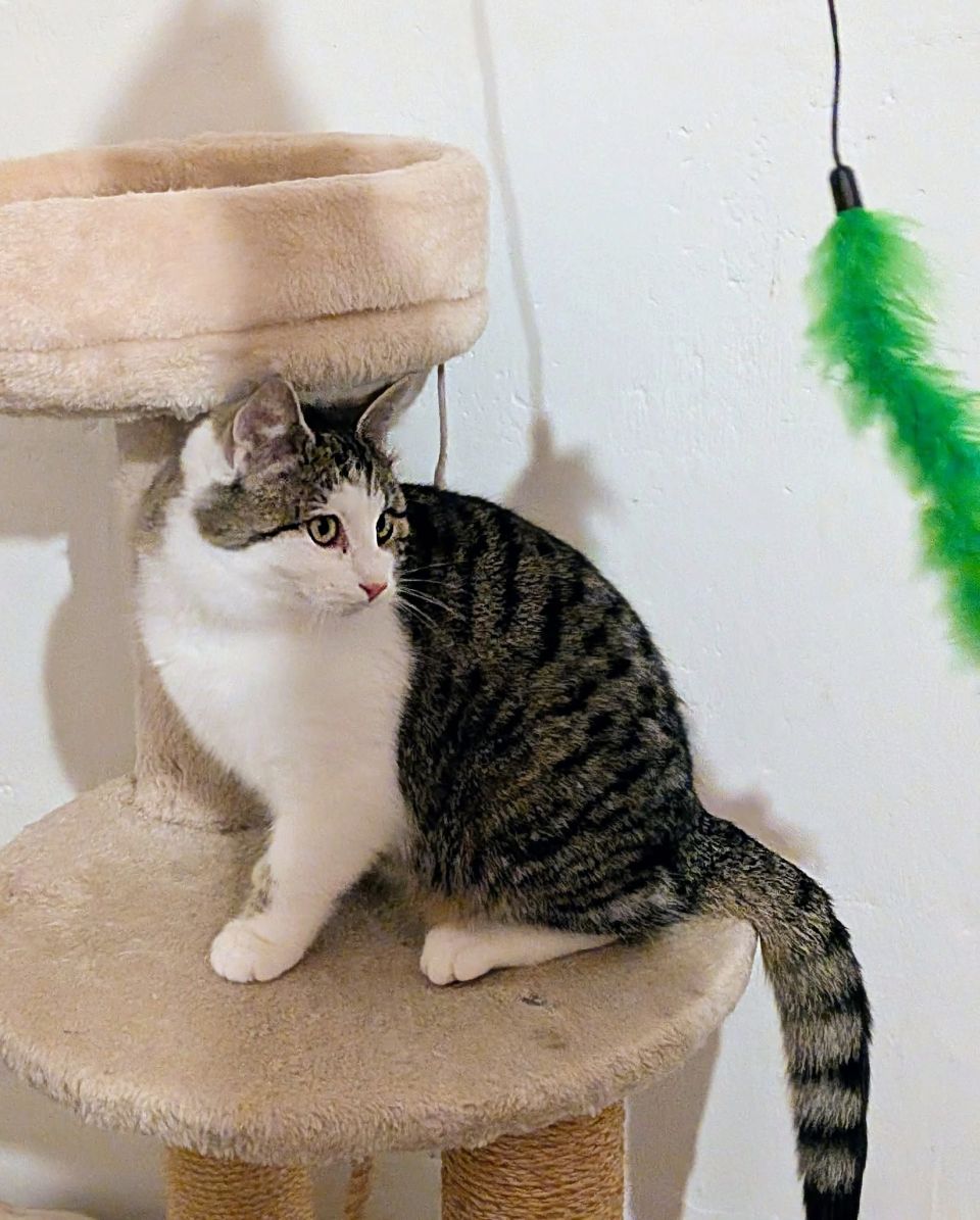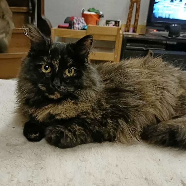 Bonjour c’est moi Fanta ! Je suis une jolie minette au regard tendre. Je suis née dans la nature et on m’a trouvée il y a quelques semaines avec mes sœurs dans un vieil amas de bois où nous essayions de nous réfugier et de nous protéger du froid. Assez craintive au début, je n’ai pourtant jamais été agressive ni donné de coups de griffes. Je soufflais juste de temps en temps pour dire que j’avais peur. Maintenant j’apprécie les caresses et me mets à ronronner, même s’il faut parfois un moment pour que je me lâche et que je comprenne qu’on ne me veut pas de mal. On peut même me prendre dans les bras ! Le temps viendra, quand je vivrai complètement en famille, où je ferai confiance à 100% et où je n’aurai plus cette petite crainte quand on entre dans la pièce qui nous est destinée. Ma maman d’accueil en est sûre, car je suis douce et cherche le contact. J’adore jouer en tous cas ! Une famille avec des enfants (pas en bas âge) me plairait sûrement s’ils sont gentils avec moi. Les chiens je ne connais pas, il vaut peut être mieux éviter.