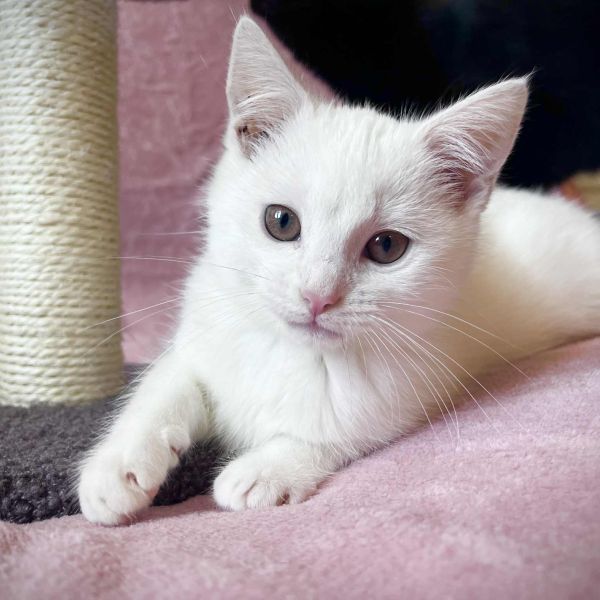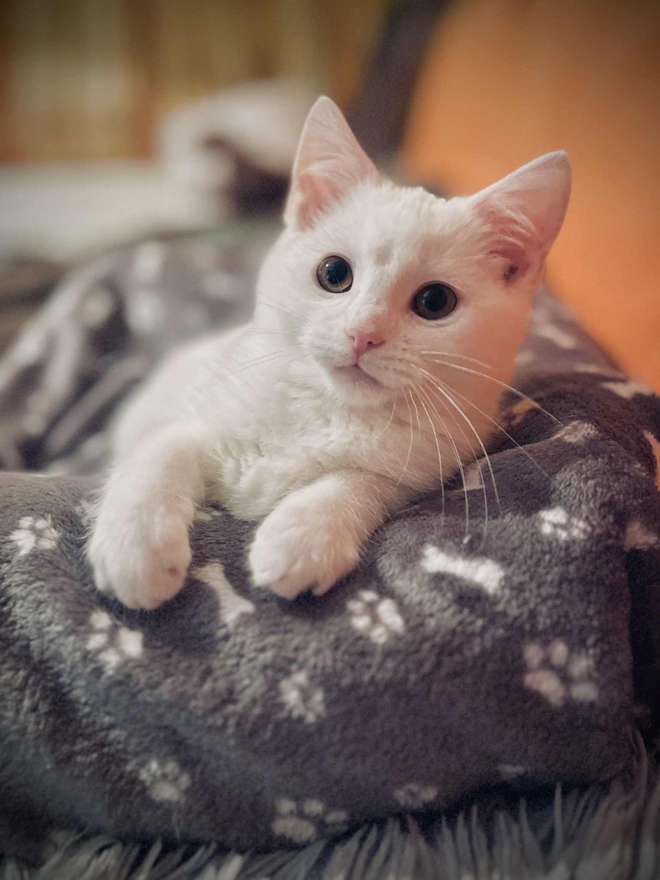 Je suis un bébé et j’adore découvrir, courir, jouer et surtout ennuyer gentiment les chats d’Amber. Je suis enfin prête pour mon adoption! J’aimerais un moins un(e) ami(e) chat parce que j’aime beaucoup jouer et interagir. J’ai besoin d’une famille qui soit attentive et qui ne laisse pas sortir les chats parce que j’ai une particularité: je suis sourde! Du coup les dangers de l’extérieur sont décuplés pour moi! À part ça, je vis ma vie normalement. Il faut juste apprendre à communiquer autrement. Dès que ma pote bipède se met dans le canapé je me met sur elle et je ronronne. Je suis une pot de colle et je regarde tout ce qu’elle fait