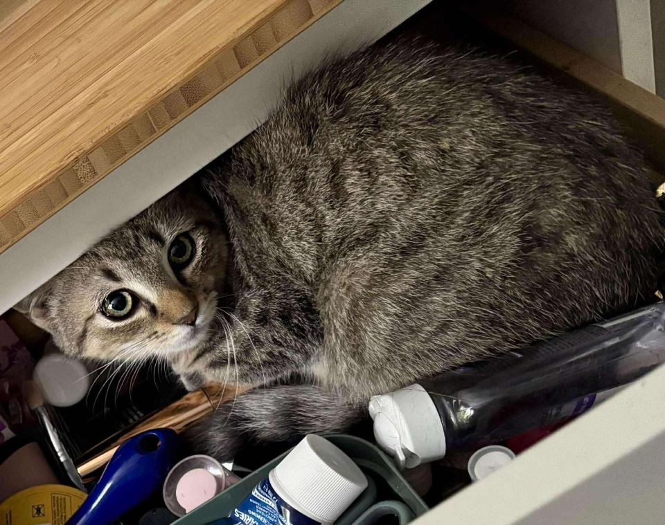 Coucou les amis, moi c’est Marley ! J’ai été trouvé avec mes frères et sœurs début juillet. J’étais très jeune, sauvage et peureux, mais je suis le premier de la troupe à avoir surmonté mes peurs pour apprécier les gratouilles ! Je suis curieux, joueur et j’apprécie votre présence (même si je n’aime pas encore qu’on me porte). Je suis une véritable machine à ronrons ! Dans ma famille d’accueil, je côtoie des chiens, des chats et des enfants. J’aime tout le monde ! Je suis très proche de mon frère, mais il a encore fort peur des humains. Si vous avez le cœur gros assez pour deux chatons, nous aimerions continuer notre route ensemble. Je suis visible à Villers-le-Bouillet