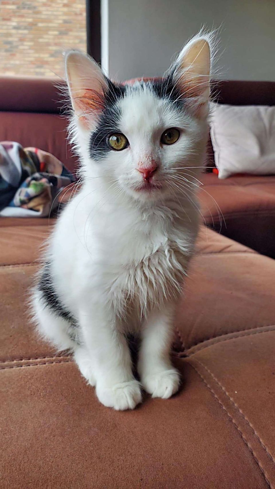 Bonjour, je suis Milky. Petit mec trouvé dans le moteur d’une voiture et jamais réclamé. Je suis certainement né dans un foyer, parce que je suis très proche des humains, très pot de colle. Je pleure lorsque je me retrouve seul. Il me faudra beaucoup de présence humaine ou animale. J’adore jouer et je ne suis pas une brute. Les enfants n’ont rien à craindre de moi. Même si les autres chats, même grands, aux premiers abords me font peur, je suis tenté de vouloir jouer avec. Un chien calme pourrait aussi devenir mon futur partenaire de jeu. Je suis un petit rusé par contre, une porte ouverte et je file comme l’éclair. C’est sans doute la raison de mon escapade dans les rues. Un jardin pour quand je serai grand et conscient des dangers serait le bienvenu. Pour me décrire, j’ai le poil mi-long et treeèèes doux, mais malheureusement mes oreilles sont blanches. Il faudra être prudent les jours de forte luminosité. Je risque de graves problèmes si elles sont exposées au soleil sans protection solaire (crème) et oui, je suis un doux sensible moi les amis