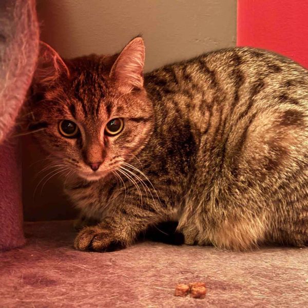 Ce chaton, appelé Murphy, a été livré à lui-même pendant un bon moment. Il est arrivé très effrayé. Il l’est toujours un peu, mais il aime la chaleur d’un foyer et la présence d’un être humain.