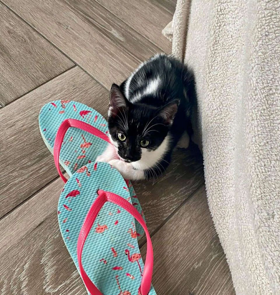 Je suis Oréa, Une petite chatonne toute douce, très discrète et calme. J’adore jouer à cache cache avec les humains, à tu me vois, tu me vois pas.. mais j’avoue.. j’ai un peu la trouille quand on me trouve !