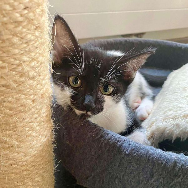 Je suis Oreo, Un petit chat tout doux, très discret et calme. J’adore jouer a cache cache avec les humains, à tu me vois, tu me vois pas.. mais j’avoue.. j’ai un peu la trouille quand on me trouve !