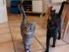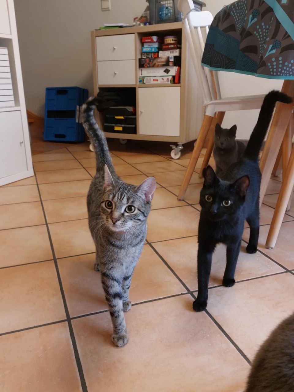 Coucou, moi c’est Tina. J’ai été attrapée avec ma maman et mes soeurs. Il faut bien avouer qu’avec mes soeurs on n’était pas commodes à notre arrivée. C’est normal, nous sommes nés dehors et avons dû survivre. La journée on est plus calmes, on surveille ce qui se passe depuis l’escalier, on fait la sieste où les chiens n’ont pas accès car nous en avons peur. Le soir, quand les chiens sont tranquilles, on vient explorer le salon, on regarde un peu la télé, on joue avec les chats de la maison. On se précipite au bruit du sachet lorsqu’il y a une distribution de friandises. J’adore ça, les friandises: je viens les chercher dans la main. Plutôt discrète, je suis aussi très curieuse de ce que que font les humains, alors je m’installe souvent a une distance raisonnable, dans l’escalier ou sur un meuble, et j’observe. Je suis très jolie et attachante, une présence tranquille quand tout est calme…. mais je n’ose pas encore me laisser caresser… Pourtant je viens tout tout près des humains pour les observer. Je suis curieuse, quand je vois les chats de la maison se faire caresser, j’ai aussi envie d’y aller. Mais dès qu’un chien bouge je repars. Je progresserais plus vite en étant séparée de mes soeurs et surtout dans une famille calme sans chien, pas d’enfant en bas âge et avec au moins un autre chat. Qui voudra bien me donner ma chance et qui me laissera le temps de vous donner ma confiance et enfin d’offrir mon amour ?