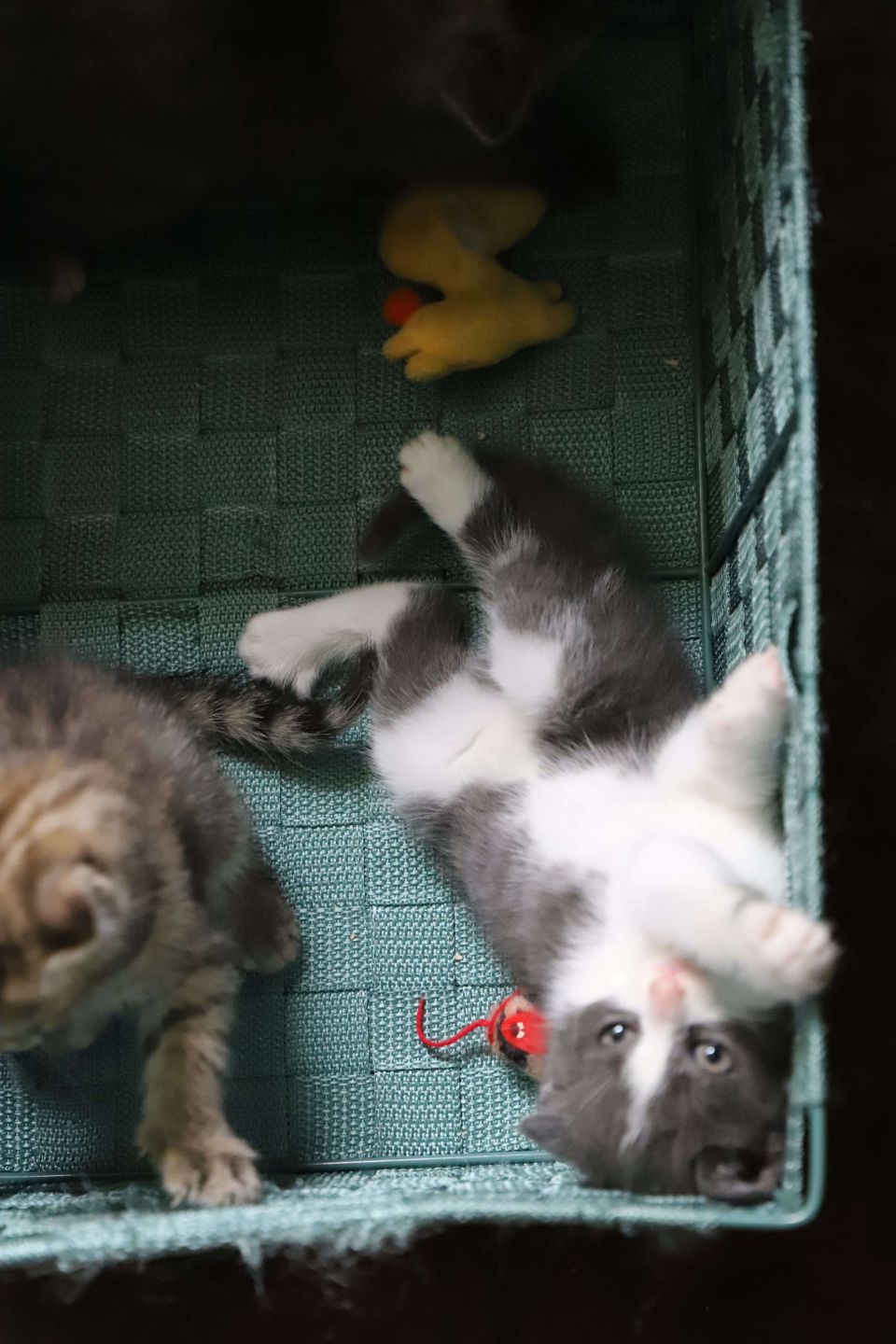 Archibald alias Archi : Notre maman est sauvage et sera remise sur son terrain lorsque nous seront partis. On a eu de la chance d’avoir pu être mis en famille d’accueil avec elle. Plutôt réservé, je dois prendre ma place parmi 3 sœurs qui ne me laissent aucun répit. Timoré j’aime les moments câlins et me ferai parfois discret. Une fois en sécurité, c’est la fête assurée. Comme tous les chatons je préfère surtout les jeux pour le moment 😉 . Je vous attends pour découvrir encore plus les humains.