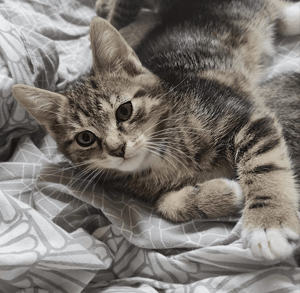 Eko, un petit mâle marbré, qui a appris à connaître les humains aux côtés de sa maman Nell et de sa fratrie. Il apprécie les caresses, même s’il reste le plus timide de la bande. Les jeux en famille il aime ça 🙂 , Il viendra se blottir sur le lit ou le canapé à vos côtés. Eko cherche une famille douce et attentionnée qui pourra lui offrir un foyer aimant, une personne douce qui le laissera encore prendre confiance. Et pourquoi pas une petite copine féline 😉