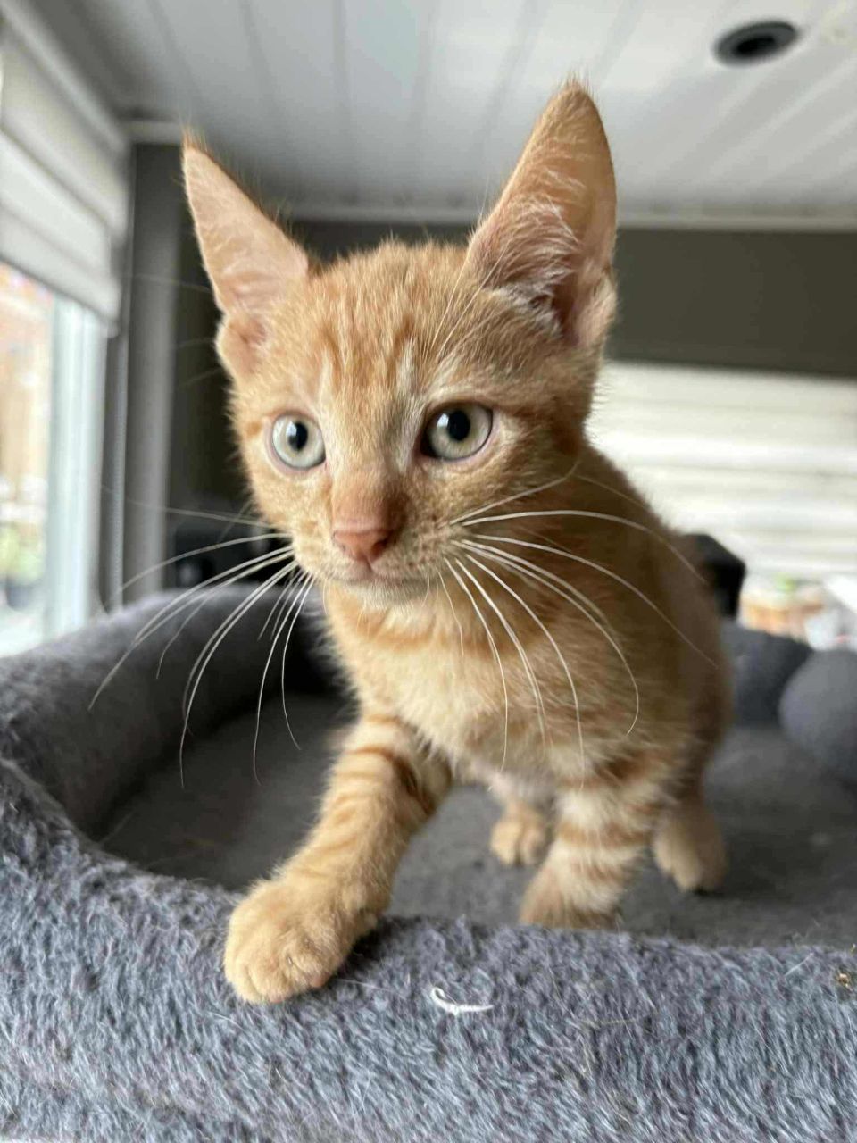 Moi, c’est Jasmin ! Je suis un petit chaton tout roux et tout mignon, aussi doux que ma couleur le laisse deviner 🧡 Un peu discret de nature, j’observe souvent avant de me lancer, mais dès qu’il s’agit de jouer, je suis toujours partant ! J’adore courir après une balle, chasser la clochette ou inventer mille jeux avec mes copains ou les humains 🎾 Après l’aventure vient le repos : j’aime dormir bien blotti dans un petit coin chaud, caché sous un plaid ou contre un coussin moelleux. Je ne suis pas très demandeur de câlins, mais je ne dis jamais non à une caresse ou une présence douce près de moi 💛 Je suis un chaton simple à vivre, équilibré et tranquille, qui s’adapte facilement à son petit monde. J’ai encore un peu peur des chiens et des grands chats, ils m’impressionnent un peu… mais avec de la patience et du respect, je finirai par comprendre qu’ils ne me veulent aucun mal 🐶💭 Je pourrais vivre en intérieur, mais je me plairais aussi avec un extérieur sécurisé, pour explorer en toute sécurité 🌿 Je m’entends bien avec mes copains félins et je serais heureux d’avoir un compagnon de jeu, même si je peux aussi bien m’épanouir seul. Je suis Jasmin, un petit chaton roux, tendre et joueur, prêt à écrire une belle histoire avec ma future famille 💕 Je suis visible à Blégny et j’attends mon foyer pour la vie avec impatience 🐾