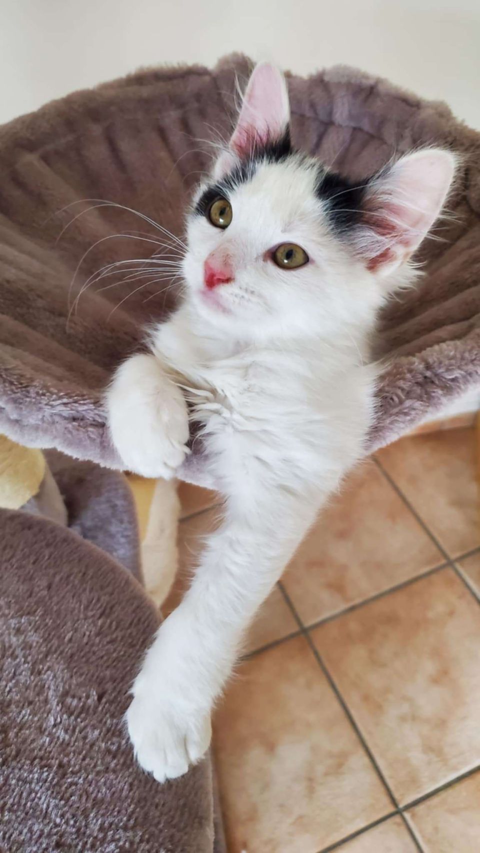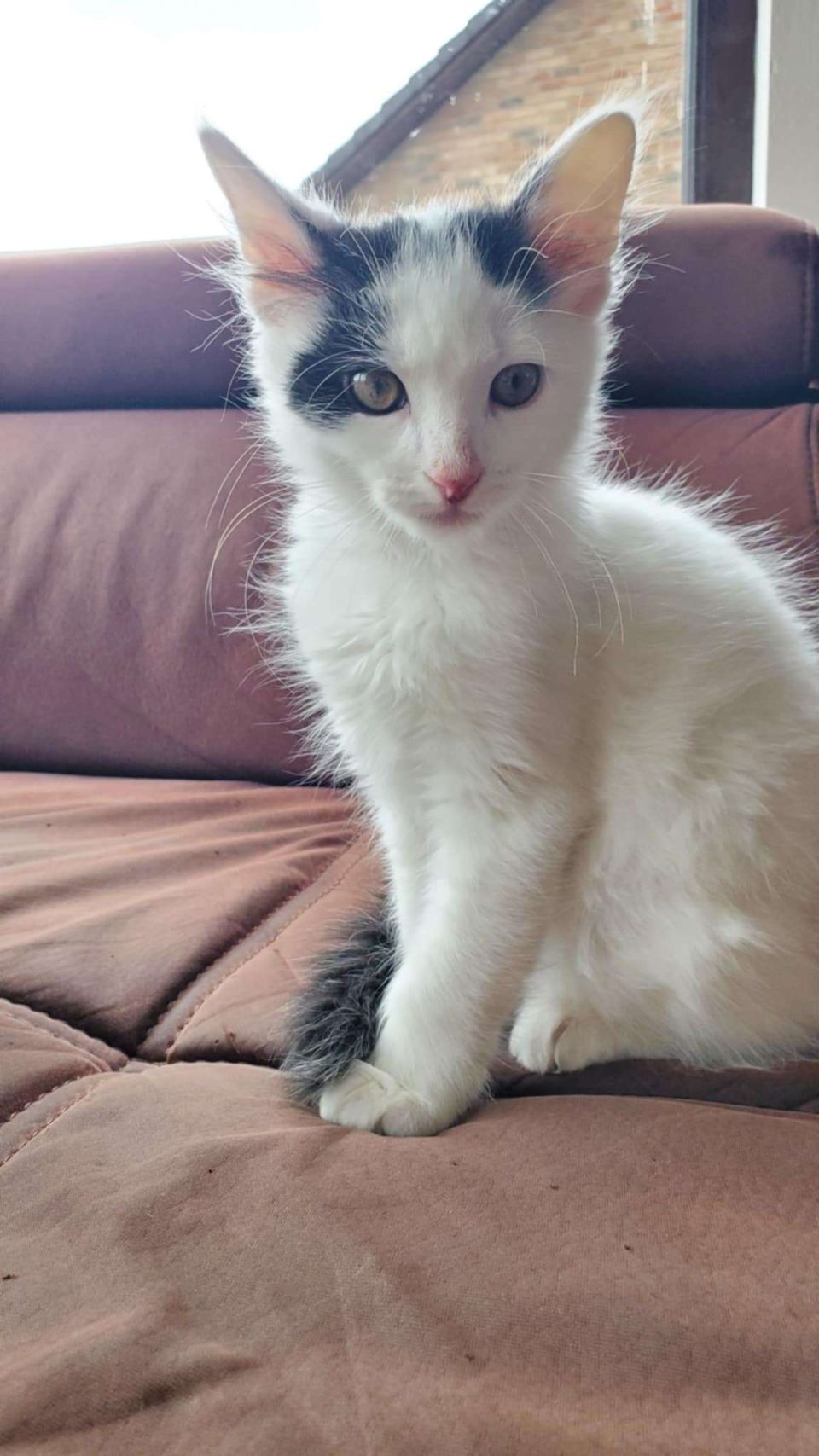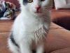 Bonjour, je suis Milky. Petit mec trouvé dans le moteur d’une voiture et jamais réclamé. Je suis certainement né dans un foyer, parce que je suis très proche des humains, très pot de colle. Je pleure lorsque je me retrouve seul. Il me faudra beaucoup de présence humaine ou animale. J’adore jouer et je ne suis pas une brute. Les enfants n’ont rien à craindre de moi. Même si les autres chats, même grands, aux premiers abords me font peur, je suis tenté de vouloir jouer avec. Un chien calme pourrait aussi devenir mon futur partenaire de jeu. Je suis un petit rusé par contre, une porte ouverte et je file comme l’éclair. C’est sans doute la raison de mon escapade dans les rues. Un jardin pour quand je serai grand et conscient des dangers serait le bienvenu. Pour me décrire, j’ai le poil mi-long et treeèèes doux, mais malheureusement mes oreilles sont blanches. Il faudra être prudent les jours de forte luminosité. Je risque de graves problèmes si elles sont exposées au soleil sans protection solaire (crème) et oui, je suis un doux sensible moi les amis