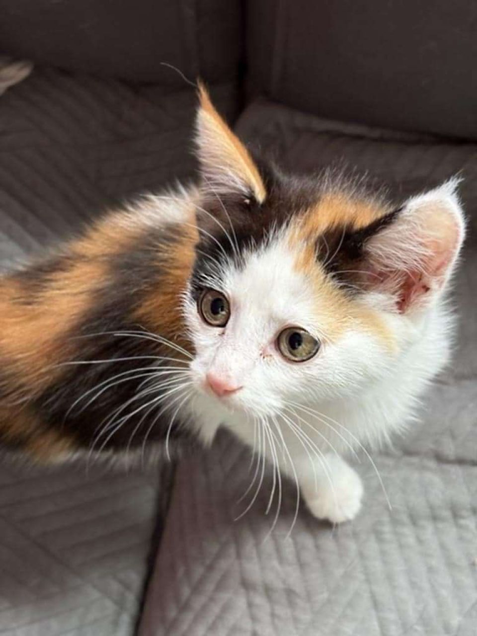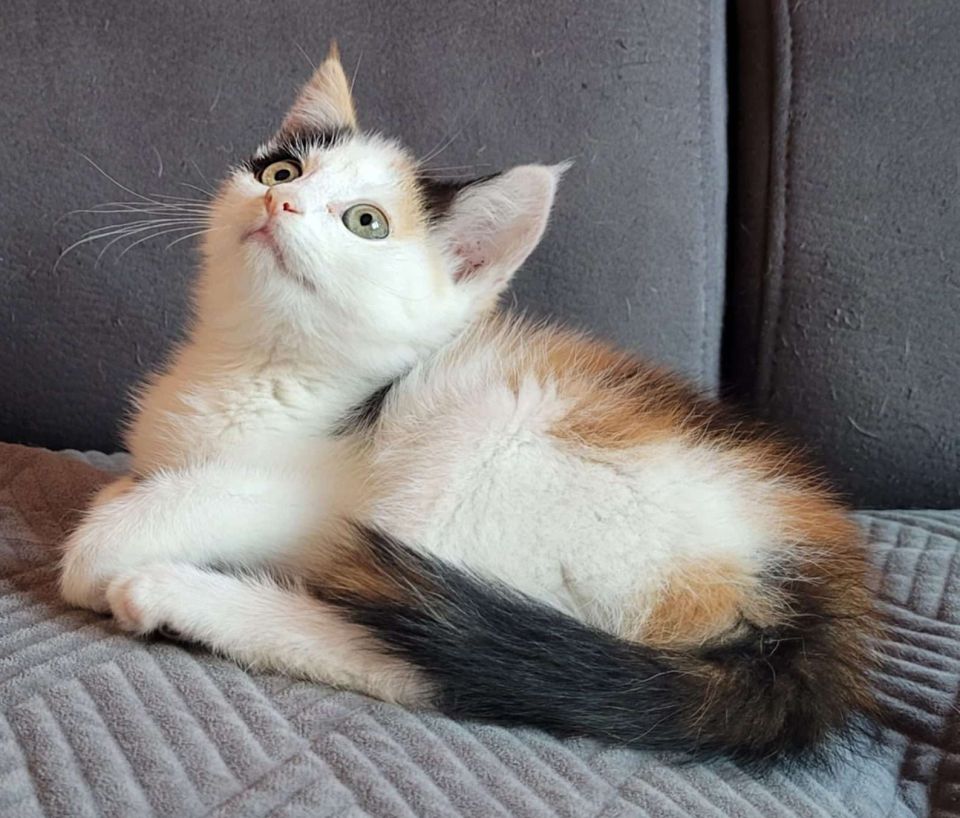 Coucou, moi c’est Montana. Je suis née dans une ferme à la mi-juillet 2024 avec mes deux frères et mes deux sœurs. Je suis une chatonne pleine de vie ! J’adore courir, sauter, grimper et jouer avec eux. Je me laisse facilement caresser, et je ronronne rapidement. J’aime explorer et découvrir le monde qui m’entoure. Je suis déjà habituée aux grands chats et aux petits chiens, ils ne me font pas peur. J’aime beaucoup le contact avec les autres animaux, donc avoir un copain chat serait un vrai plus pour moi. Je m’entends bien avec les enfants respectueux, qui peuvent vite devenir mes amis. J’ai besoin de jeux et d’aventures ! J’adore passer de longs moments à jouer, et il me faut de l’espace pour me dépenser, ainsi que beaucoup d’amour pour grandir en toute confiance. Entre deux sessions de jeu, j’apprécie les petits câlins pour recharger mes batteries. Pour l’instant, l’extérieur ne m’attire pas vraiment, mais quand je serai plus grande, je pourrais l’explorer si vous le souhaitez, à condition que ce soit loin des routes dangereuses, dans un jardin ou sur une terrasse sécurisée. Je suis à la recherche d’une famille avec qui je pourrais continuer à découvrir le monde, jouer, grandir entourée d’amour et de sécurité, qu’elle soit composée de petits ou de grands humains. La présence d’un autre chat serait vraiment idéale pour moi, ou encore mieux, être adoptée avec l’un de mes frères ou sœurs. Si vous pensez pouvoir m’offrir tout ça, n’hésitez pas à venir me rendre visite à Blegny. Je vous attends avec impatience !