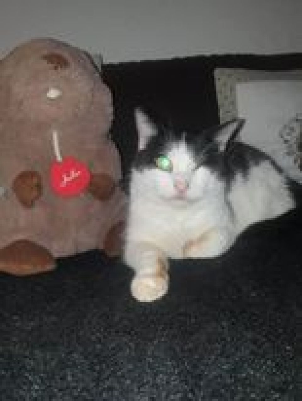 Pâquerette est une petite chatte sans défaut elle est incroyablement gentille, elle suit les humains comme son ombre , adore se blottir contre eux ; elle parle beaucoup aussi. Elle s’entend avec ses congénères.