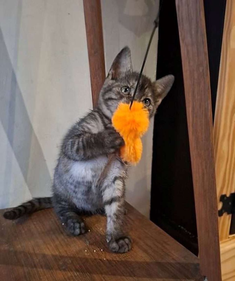 Saori (smoke), je suis une petite demoiselle au fort caractère, indépendante et qui adore jouer. Dans mes moments calmes, j’aime me blottir contre mes parents d’accueil et recevoir quelques caresses. Grande gourmande je n’hésiterai pas à venir voir si je peux grappiller un petit bout de quelque chose pendant vos repas. Je suis arrivée avec mon frère et ma sœur alors âgée de seulement 4 semaines, la vie a mal commencé pour nous.