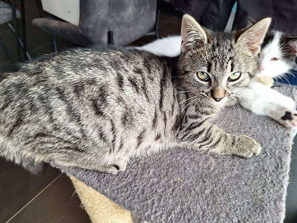 Nous avons le plaisir de vous présenter Stitch, un petit chaton plein de vie et d’énergie, qui cherche une nouvelle famille aimante. 🐾 Ce petit bout de chou aime jouer, que ce soit avec sa sœur ou avec le chat de sa famille d’accueil. Il lui faudra un copain ou une copine (jeune) pour partager ses aventures et ses jeux, car il adore faire les 400 coups. C’est un petit aventurier, il adore partir à la découverte et il apprécie particulièrement grimper (vive les arbres à chats). Bien que courageux, Stitch peut être un peu craintif et n’apprécie pas qu’on l’approche brusquement. Un peu de temps et de patience seront nécessaires pour qu’il s’adapte à son nouvel environnement. Stitch apprécie les câlins, bien qu’il sait poser ses limites. Il ronronne davantage en jouant qu’en recevant des caresses, et ne viens pas encore spontanément chercher le contact. C’est aussi un petit gourmand. Le jeu et la nourriture seront de bons alliés pour tisser une relation avec lui. La présence d’un chien est acceptée, à condition qu’il soit respectueux et calme, et qu’il ne court pas derrière le chat. Il a donc besoin d’un environnement calme (sans enfant en bas âge) et serein pour se sentir à l’aise. Si vous êtes prêts à offrir à Stitch un foyer rempli d’amour et de compréhension, n’hésitez pas à nous contacter. Il attend impatiemment de rencontrer sa nouvelle famille pour débuter une belle aventure ! ❤️