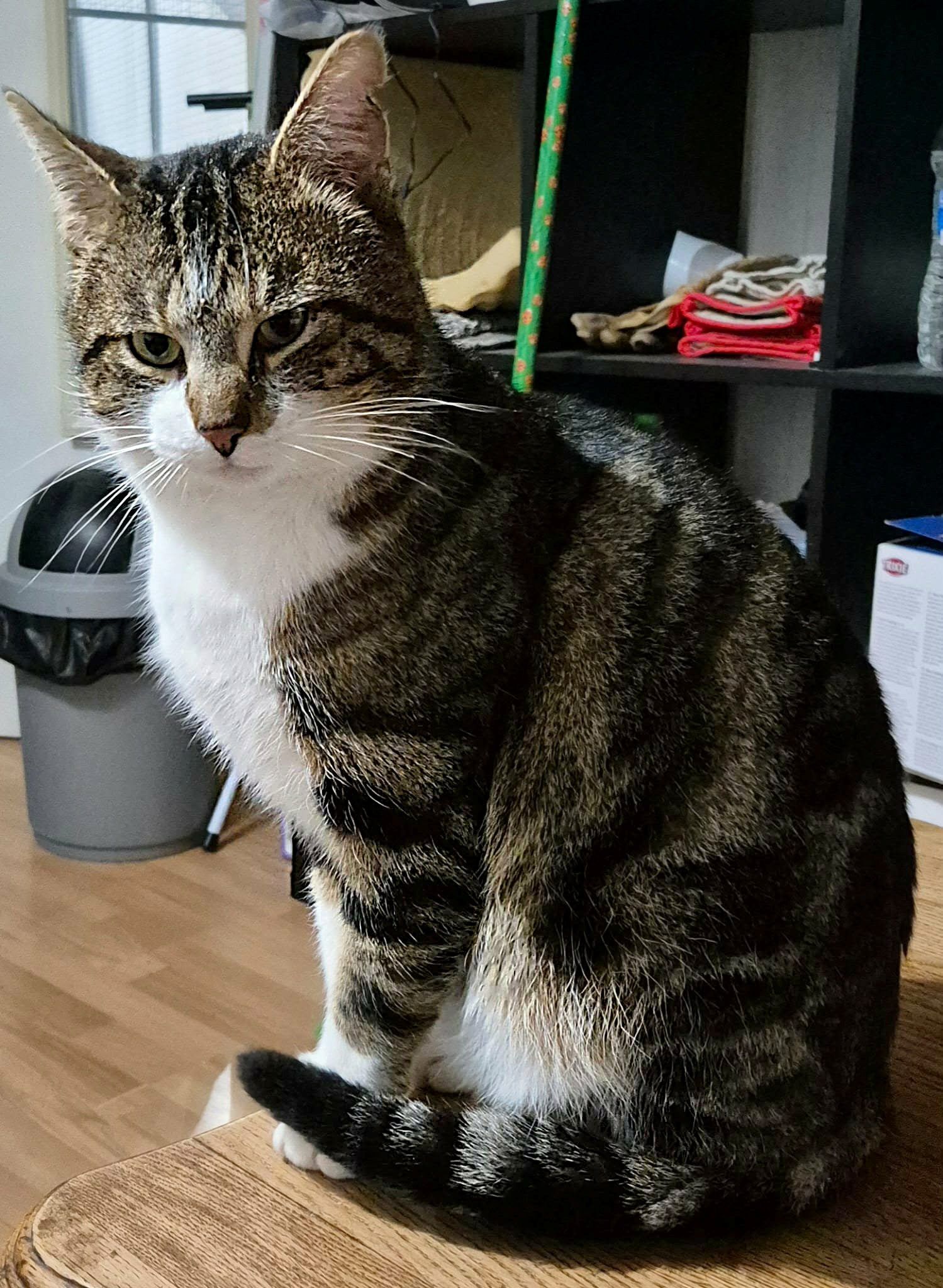 Bounty est une chatonne très craintive, mais très attachante. Grande observatrice, gourmande et joyeuse, elle aime la tranquillité et les repères. Elle apprécie les câlins, mais à petite dose et selon son envie. Elle ne se laisse pas porter et a besoin que ses limites soient respectées.