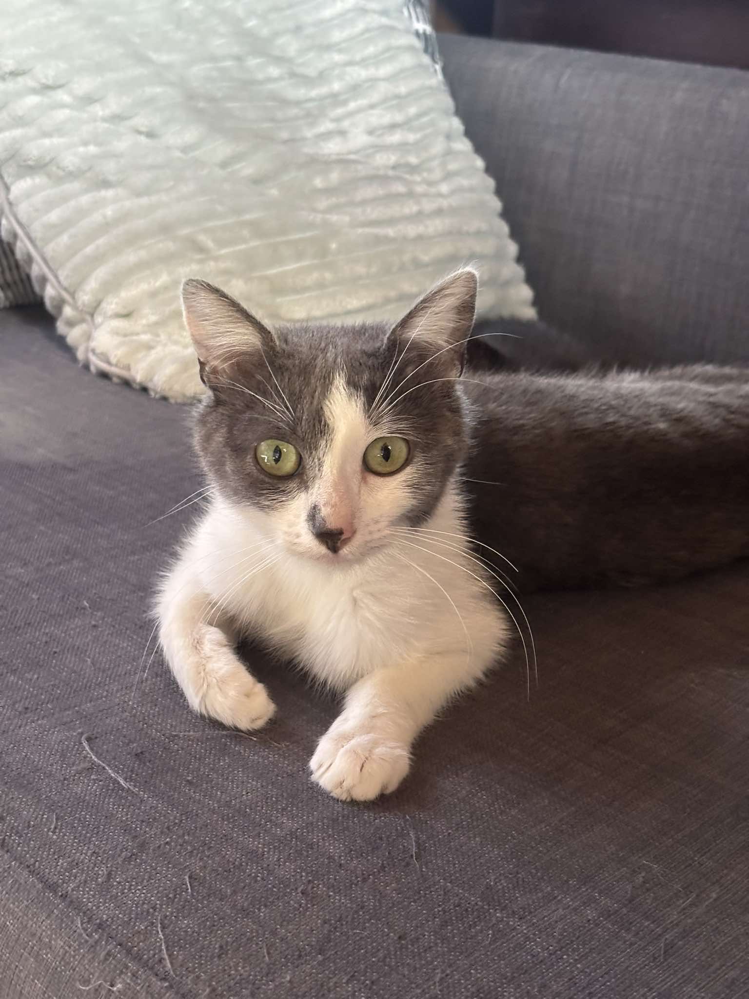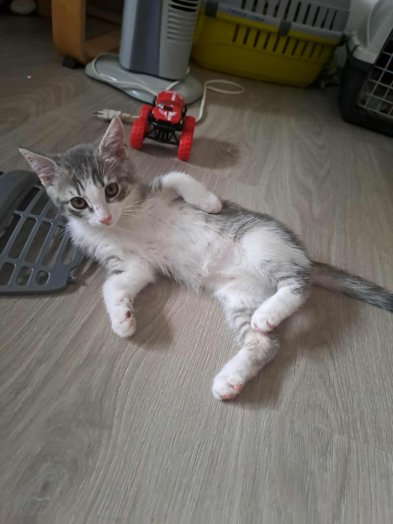 Timide au début, mais devient très câline une fois en confiance. Très gourmande et joueuse? Elle sera plus heureuse avec un compagnon félin joueur et affectueux. Elle est très proche de la femelle adulte dans sa famille d’accueil. OK enfants Ok chien calme !