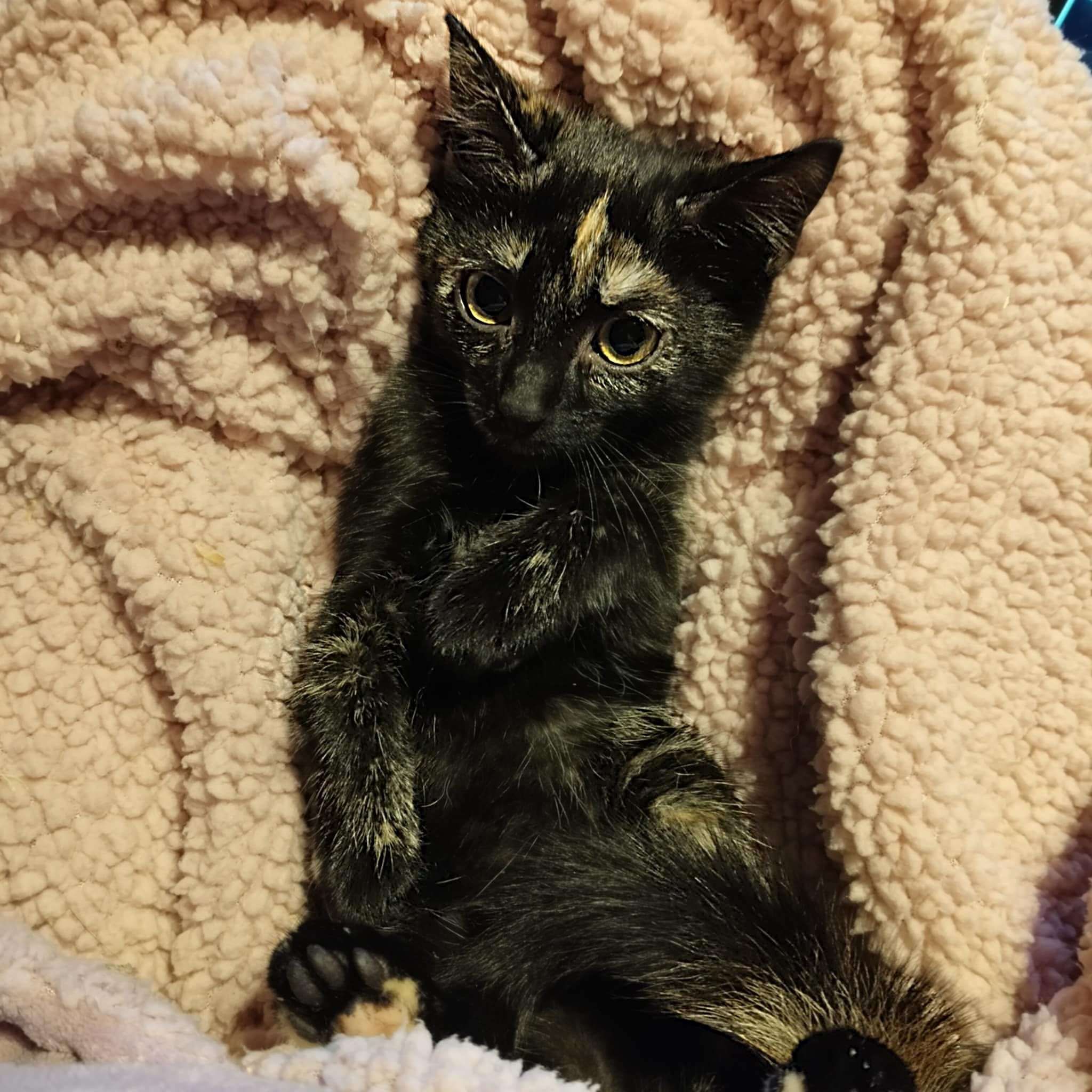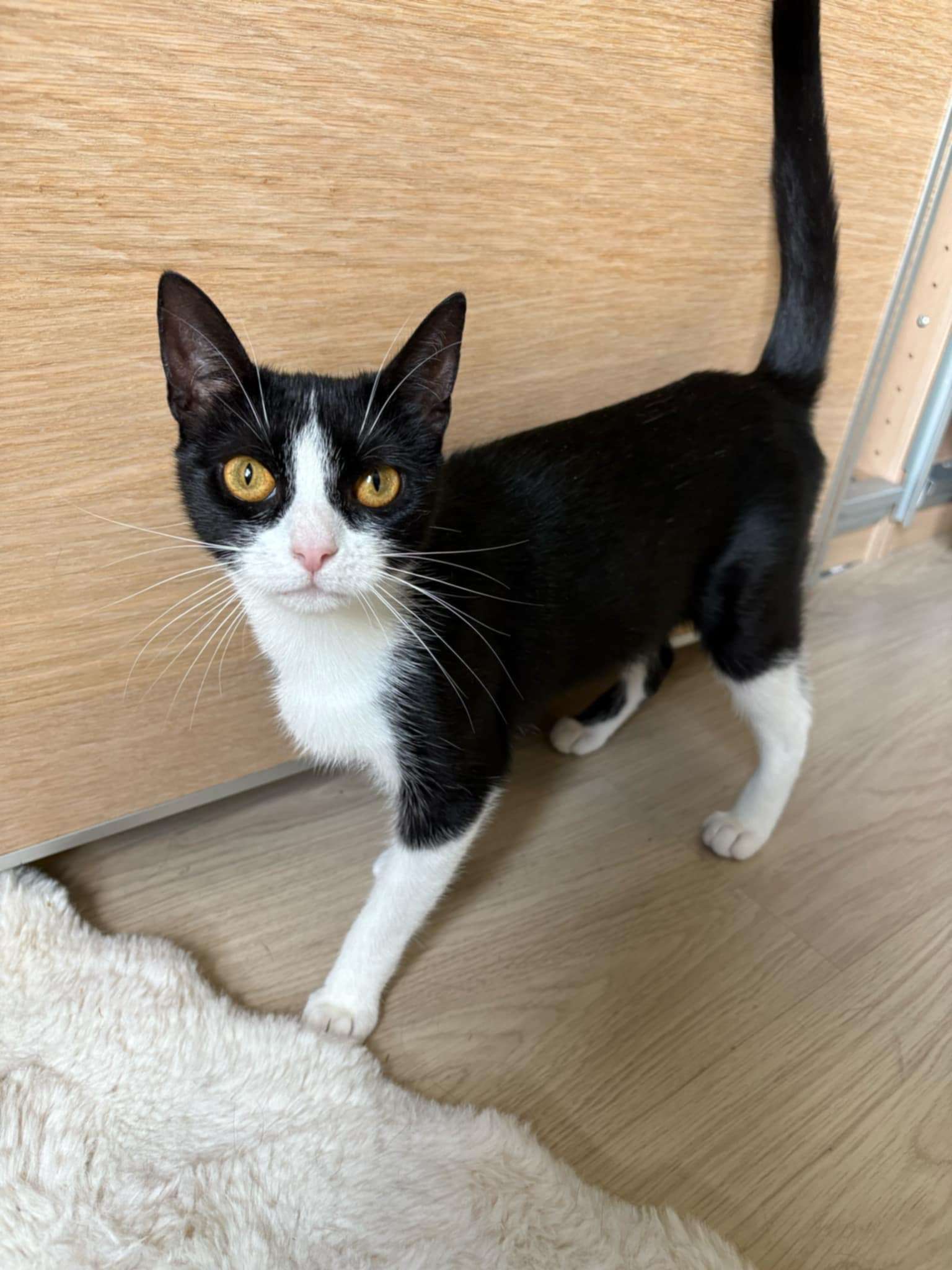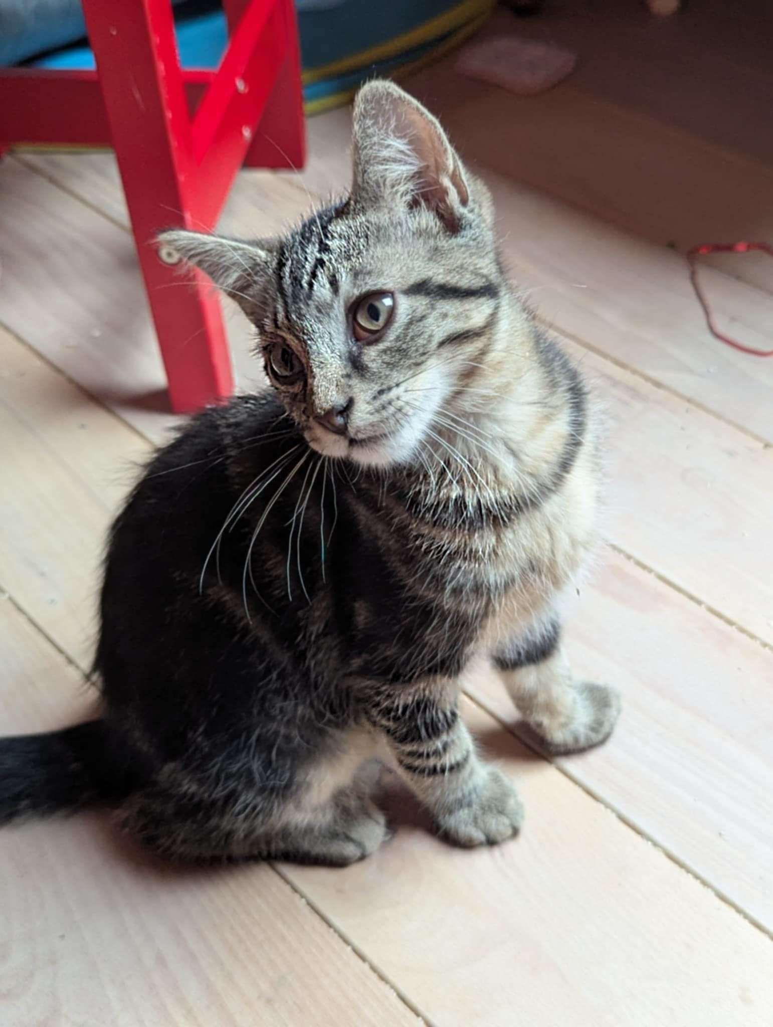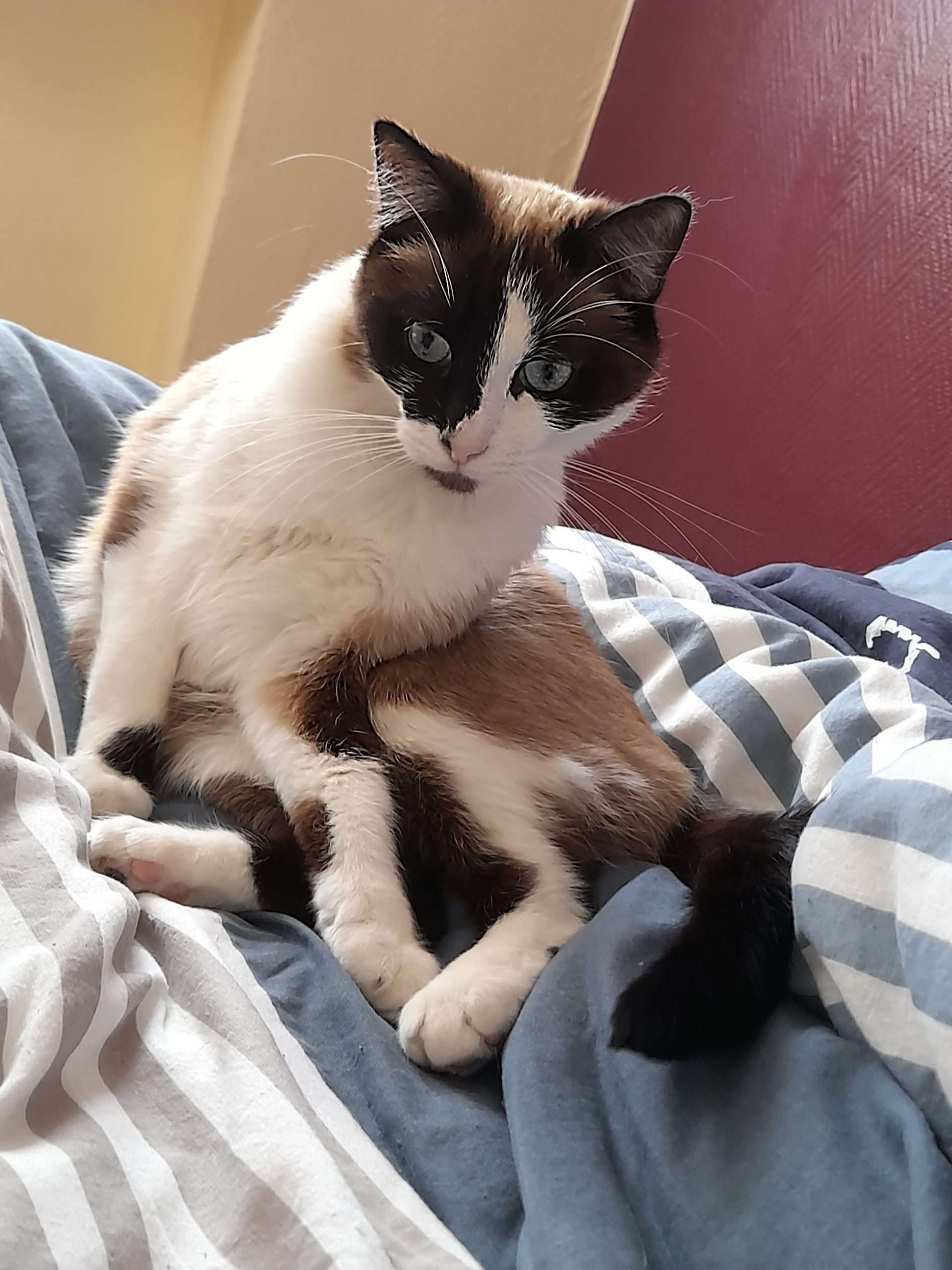 Très gourmande, elle attend avec impatience son petit festin du soir, son pâté qu’elle savoure comme un vrai délice. Callie garde aussi son côté jouette, ce qui rend sa compagnie joyeuse et vivante. Elle aime sa tranquillité et apprécie un foyer calme, tout en étant curieuse et bien dans ses pattounes. Les chiens ne l’impressionnent pas, même si elle préfère les observer de loin plutôt que d’aller à leur rencontre. Callie rêve d’une famille douce, patiente et respectueuse de son caractère, prête à lui offrir un cocon où elle pourra s’épanouir à son rythme.