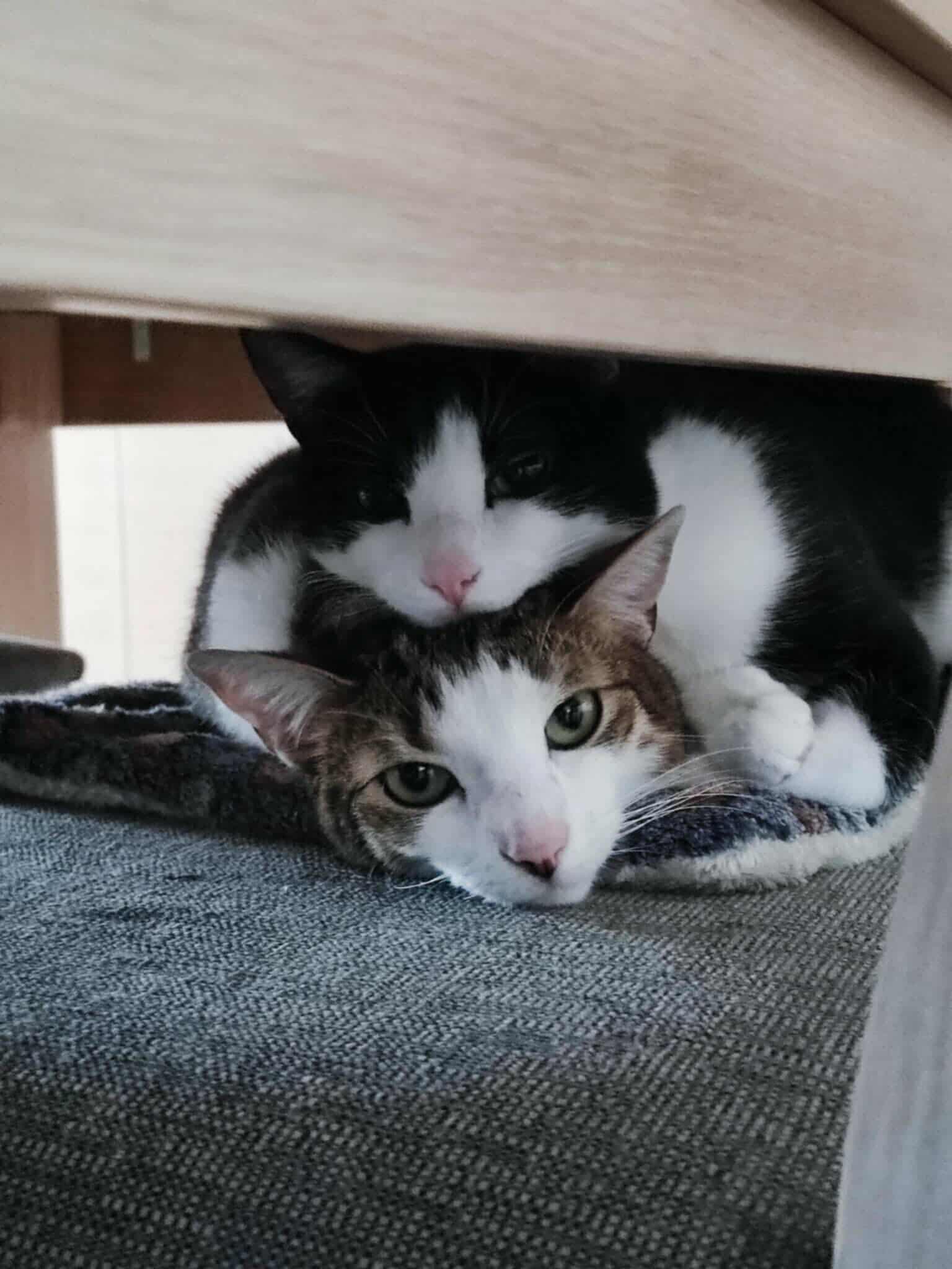 Je passe mes journées à courir, grimper, explorer et surtout… jouer avec mon frère Loki, avec qui je forme un sacré duo de cascadeurs 🧡. Nous vivons également avec Ollie, un autre copain chat, et tout se passe très bien !