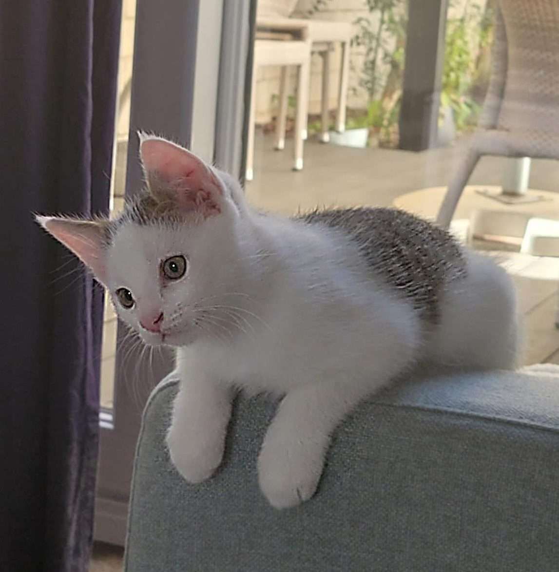 Je m’appelle Zelda. Je suis une petite chatonne toute mignonne blanc et gris perle. Ma maman d’accueil dit que j’étais un peu timide au début, mais je t’assure que j’ai bien changé. Je suis la première à courir jusqu’à elle quand elle rentre dans ma pièce de jeux, car je n’ai qu’une envie : qu’elle me prenne dans ses bras.