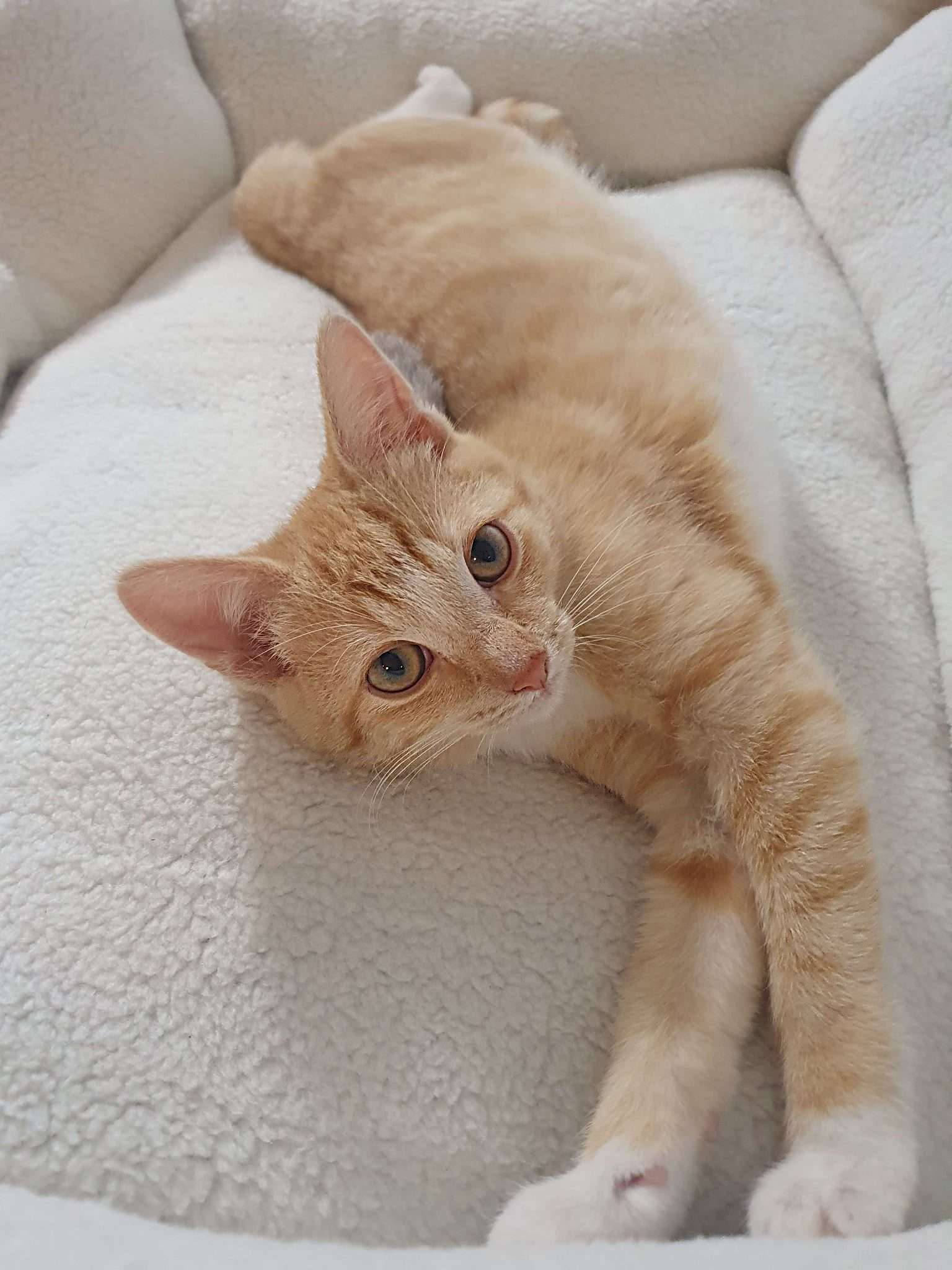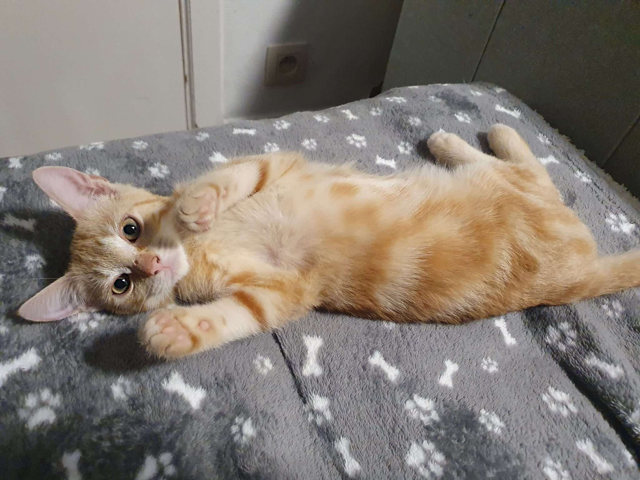 🐾 Abri(cot) est un adorable chaton plein d’énergie et de gourmandise ! Très joueur et curieux, il garde malgré tout un côté timide. Il aura donc besoin de temps pour apprivoiser ses nouveaux humains… mais une fois en confiance, préparez-vous à l’avoir souvent près de vous, endormi à vos pieds, que ce soit dans le lit ou pendant que vous travaillez.