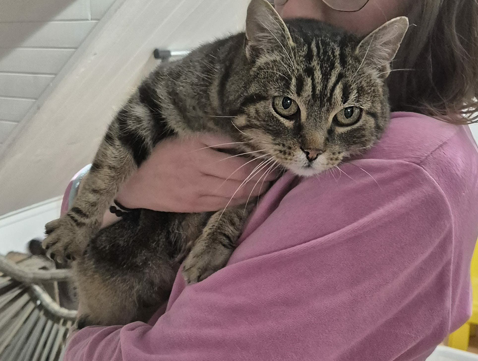 Coucou , moi c’est Rumi ! J’ai entre 3 et 4 ans. Je vivais une vie tranquille jusqu’à ce que mon humaine tombe enceinte et me jette dehors … Je suis restée seule dehors, nourrie par la voisine , pendant 6 mois. Ma maîtresse ne voulait plus de moi, soit disant parce que j’étais dangereuse pour le bébé ? Alors que je suis le chat le plus gentil du monde… Je ne griffe pas, je ne mords pas, j’adore les câlins et me blottir sur une couverture chaude pendant des heures
