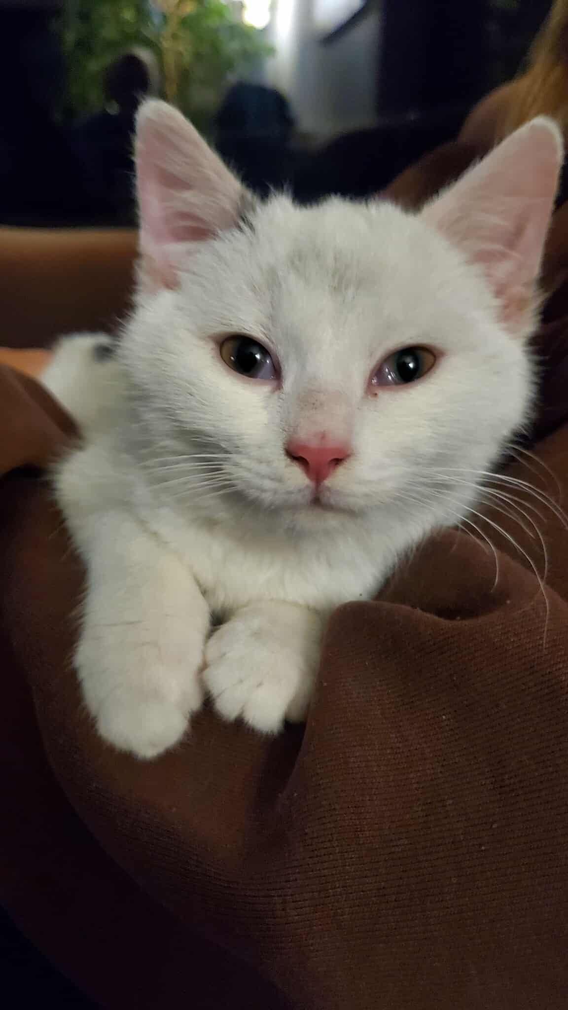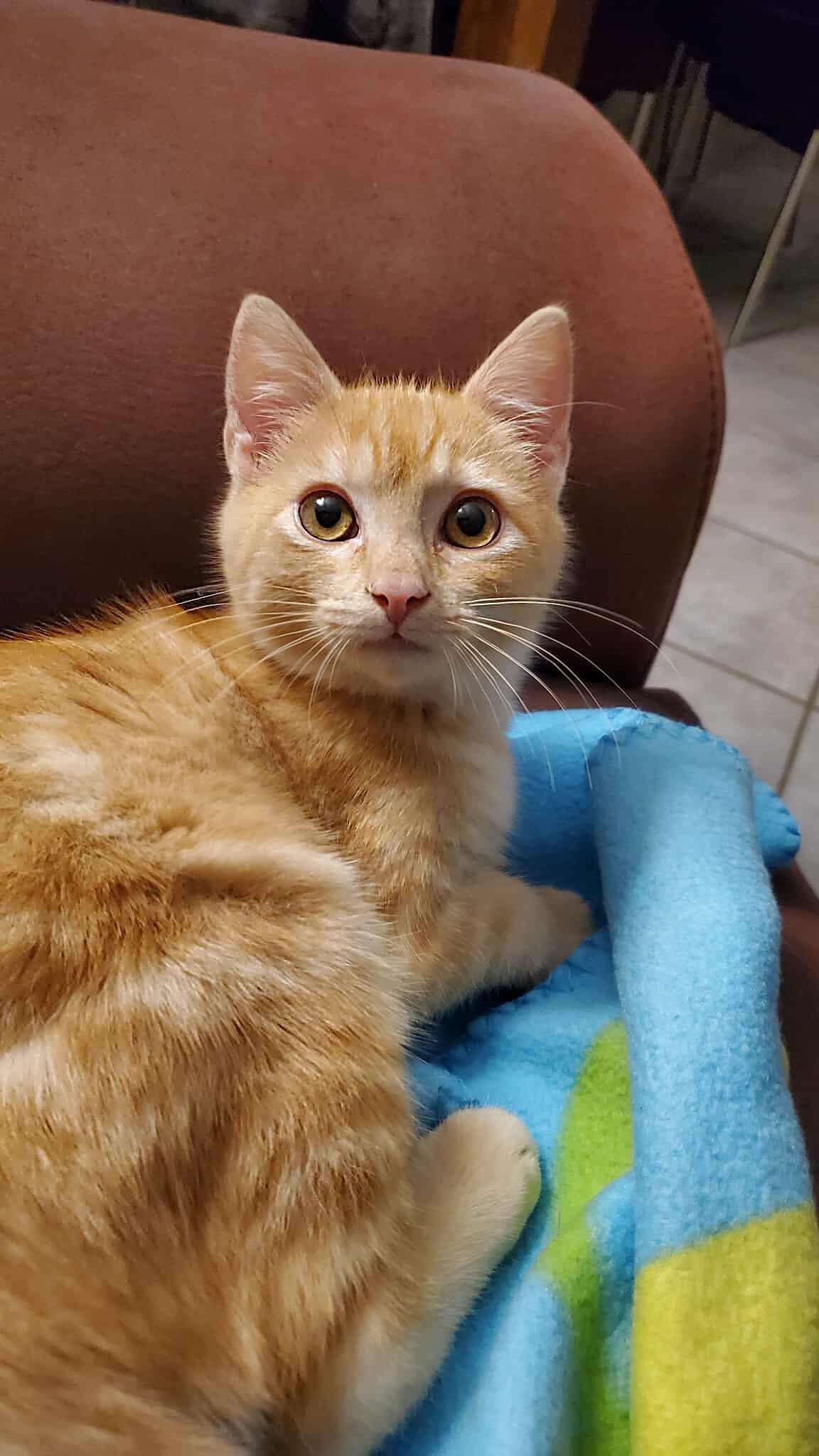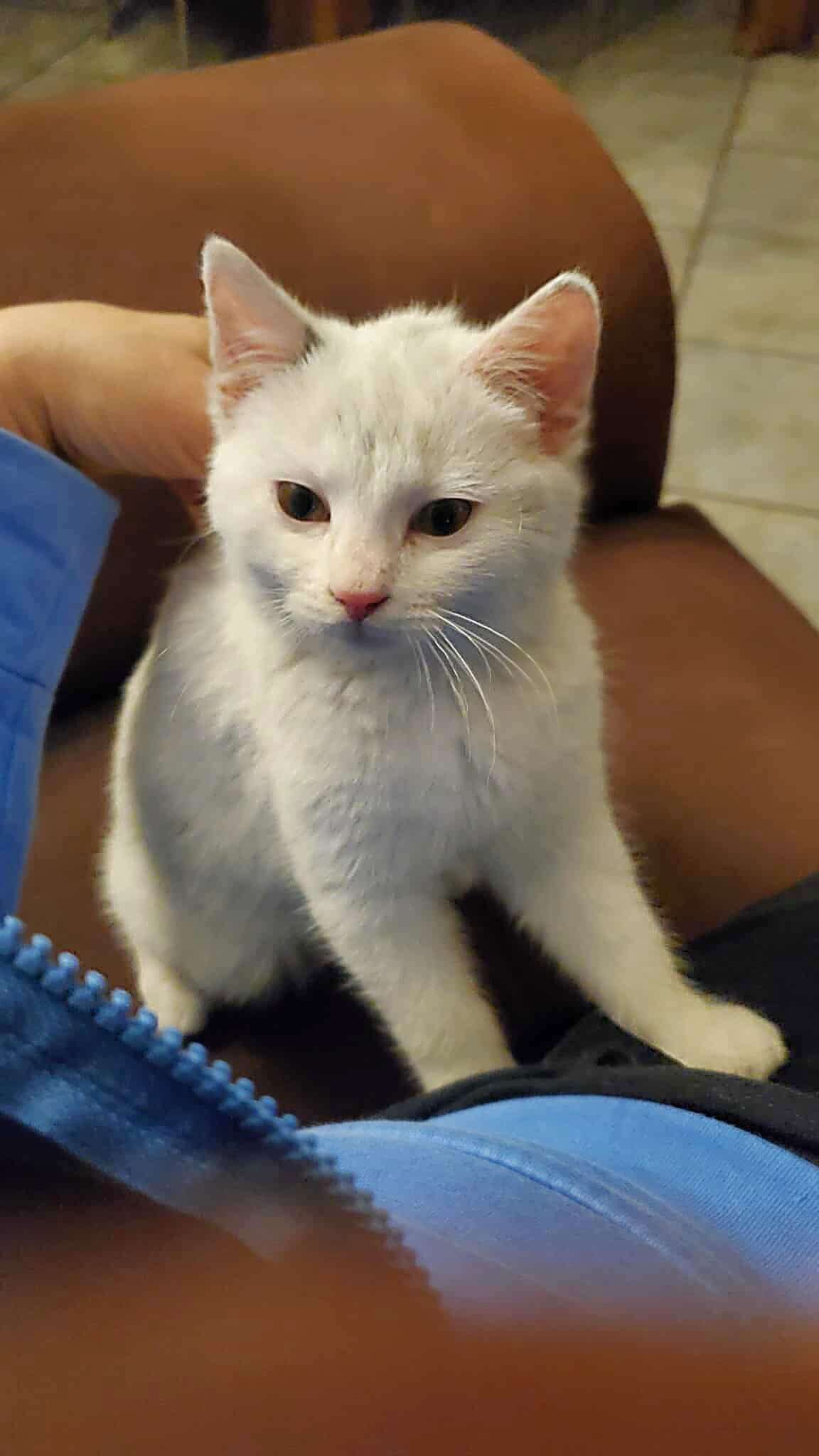 Hello, je suis la petite Roxie, j’ai 3 mois et un passé peu enviable. J’ai été retrouvée seule dans un champ entourée des 3 dépouilles de ma maman et de mes frère et soeur. Je suis timide au premier abord, mais tellement en demande de câlins. Vous êtes debout, je file me cacher… vous êtes assis, je suis la première sur vos genoux. Je suis entourée de 2 plus grands chatons mâles dans ma famille d’accueil et devinez qui commande