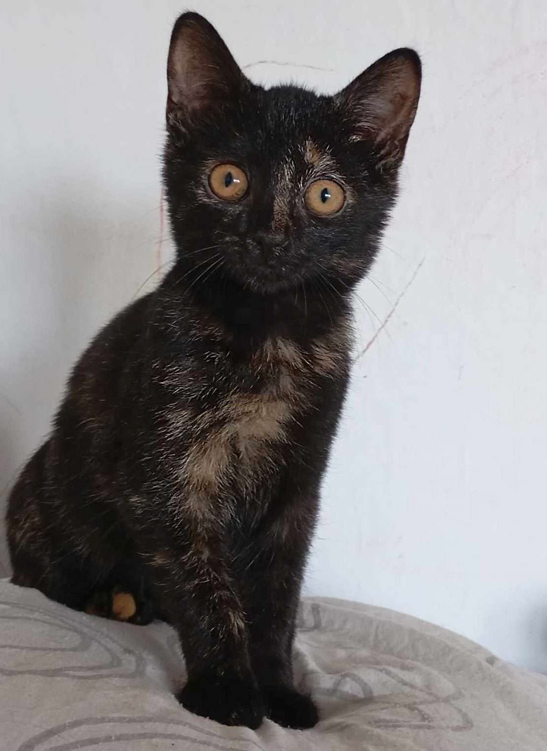 Coucou je suis la petite Olive, je suis une petite chatonne qui a besoin d’une famille présente car je suis une biberonnée et j’ai besoin qu’on s’occupe beaucoup de moi. Je voudrais aussi avoir un compagnon chat avec qui jouer. Je m’entends avec les chiens à condition qu’ils ne soient pas trop brusque. Je suis très curieuse et je n’ai peur de rien quand j’explore c’est pour cela qu’il ne me faut PAS d’accès à l’extérieur. Je cherche une famille sans enfant en bas âge car je n’ai pas les codes chats (rentrer les griffes, mordiller…) e j’ai peur des gestes brusques .Si vous chercher une petite chatonne jouette qui fera chavirer votre cœur au moment de ses câlins, vous pouvez penser à moi.