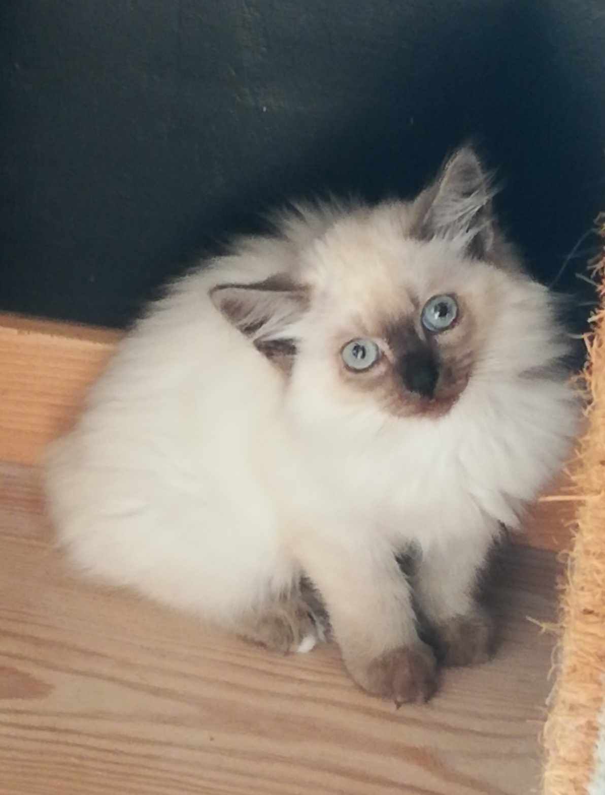 Hello! Je m’appelle Mika et j’ai été trouvée avec ma maman et mes frères et sœurs dans le jardin d’une gentille dame qui nous donnait à manger. Ma maman va retourner chez cette dame mais moi je suis bientôt prête à venir embellir vos journées (et peut être vos nuits ! ). Je sais, je sais, j’ai comme un petit air de sacré de Birmanie, magnifique n’est ce pas ? Je n’en n’ai pas le pedigrée, mais est ce important ? Mes poils mi longs auront besoin d’entretien pour garder toute ma prestance, mais je compte sur vous ! Je suis encore un peu craintive mais pas du tout agressive, et bientôt j’apprécierai les caresses et les papouilles. Les jeux ça me plaît déjà ! Alors à bientôt à Malmedy