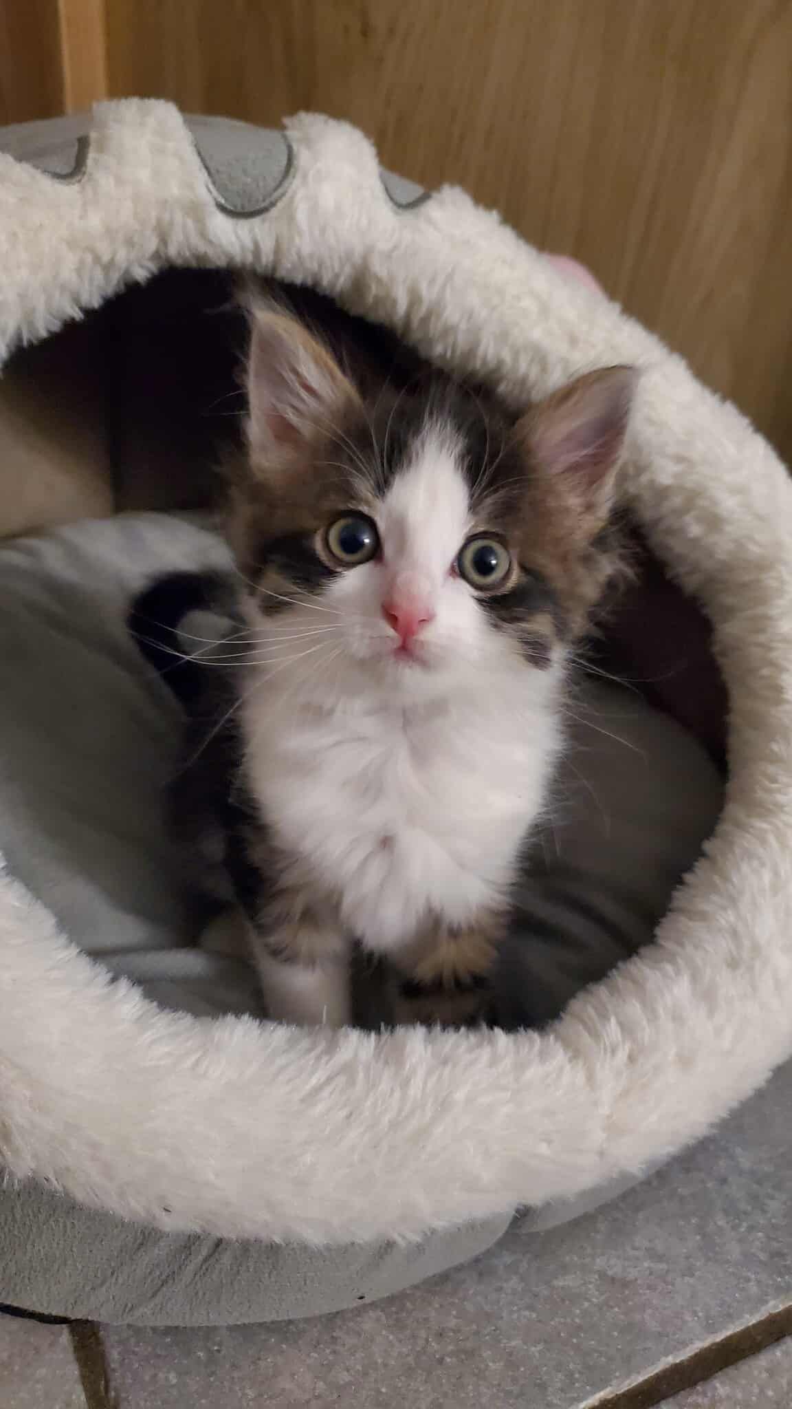 ), trouvée alors que je n’avais que 2 jours dans un jardin avec ma soeur. Je suis la seule à avoir survécu. Nous sommes restées trop longtemps dans le froid, sans être nourries. Je suis une guerrière, genre petite terreur même. Puisqu’il faut me décrire, je dois utiliser le préfixe hyper pour tout. Je suis hyperbelle ![]()