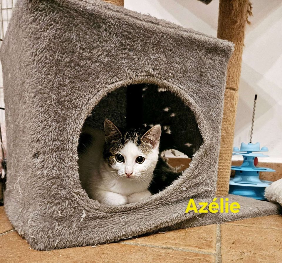 Azélie, petite tornade de douceur… et grande exploratrice dans l’âme ! Voici Azélie, une chatonne vive, joueuse et pleine d’audace, qui cherche sa famille pour la vie. Dès qu’elle arrive quelque part, elle observe. Elle scrute. Elle analyse. Puis, quand elle se sent prête… elle fonce !
