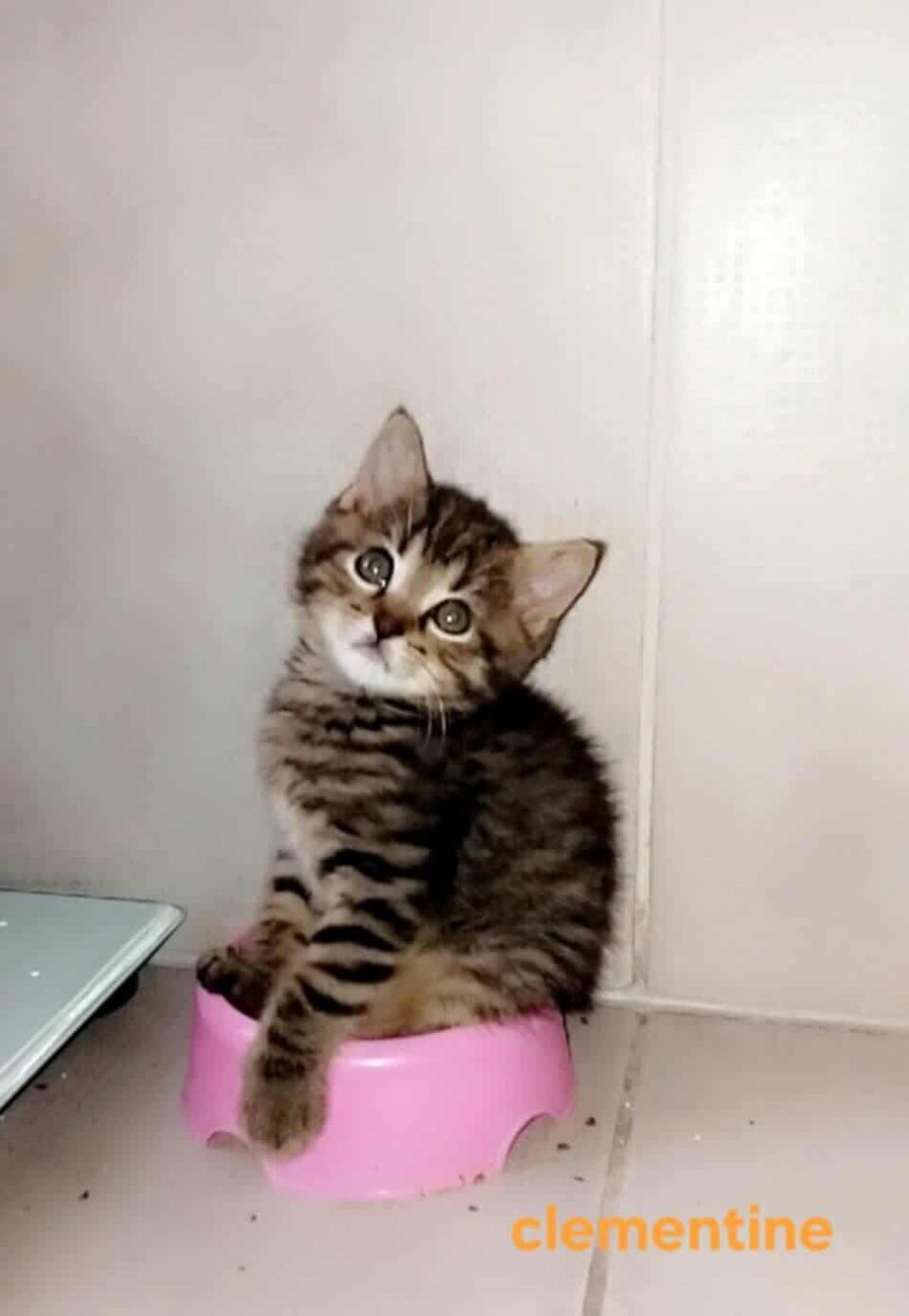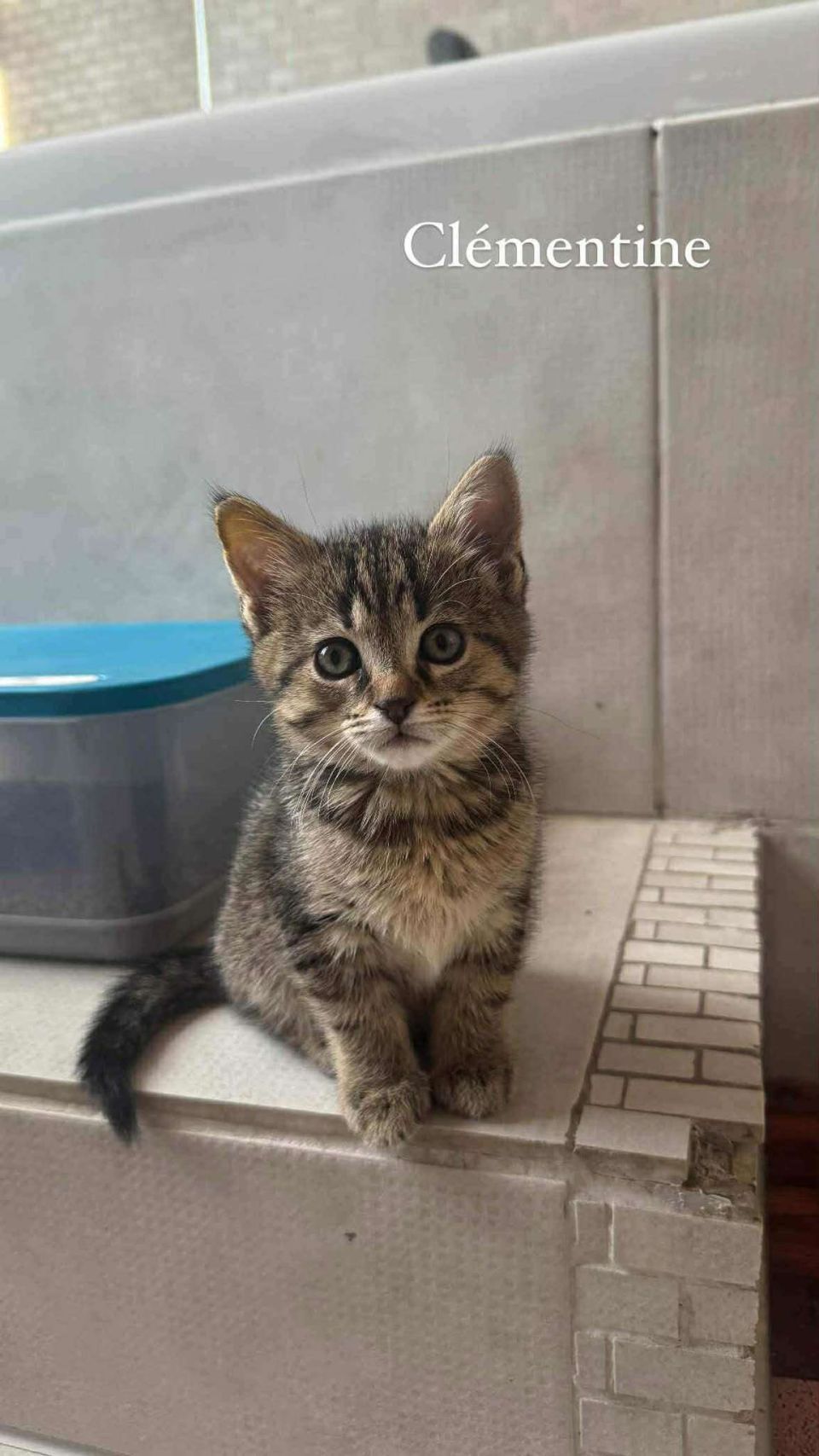 Clémentine est une petite chatte tigrée pleine de vie et d’énergie ! C’est la plus costaude de sa fratrie, avec un sacré appétit et une bonne dose de malice. Elle a elle aussi perdu sa maman très tôt, mais elle s’est bien rattrapée en développant un caractère affirmé et joyeux.
