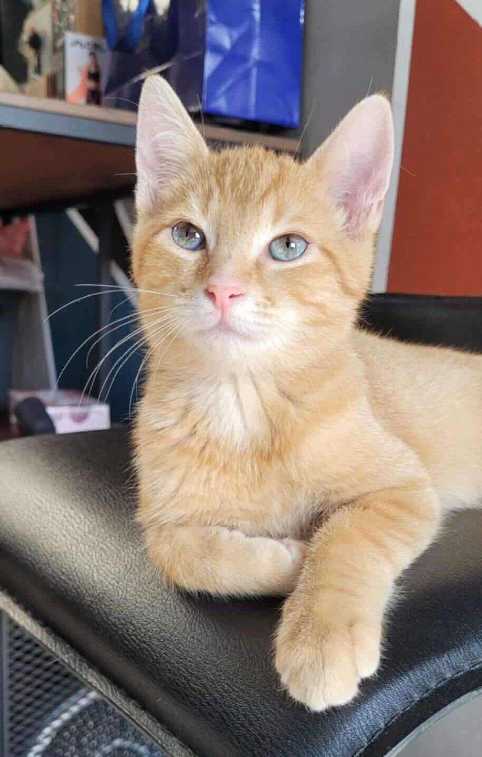 . Je suis un petit chaton mâle né d’une maman sauvage. On a été trappés, moi et mes frères et sœurs, début août, et depuis, je vis en famille d’accueil. Depuis que je suis séparé de ma maman, j’ai vite compris que les humains étaient super ! J’adore les caresses, et dans les bras, je fais plein de ronrons. Je suis un petit chaton plein d’énergie, toujours prêt à courir, sauter, grimper et découvrir le monde autour de moi. Je m’entends bien avec les autres chats