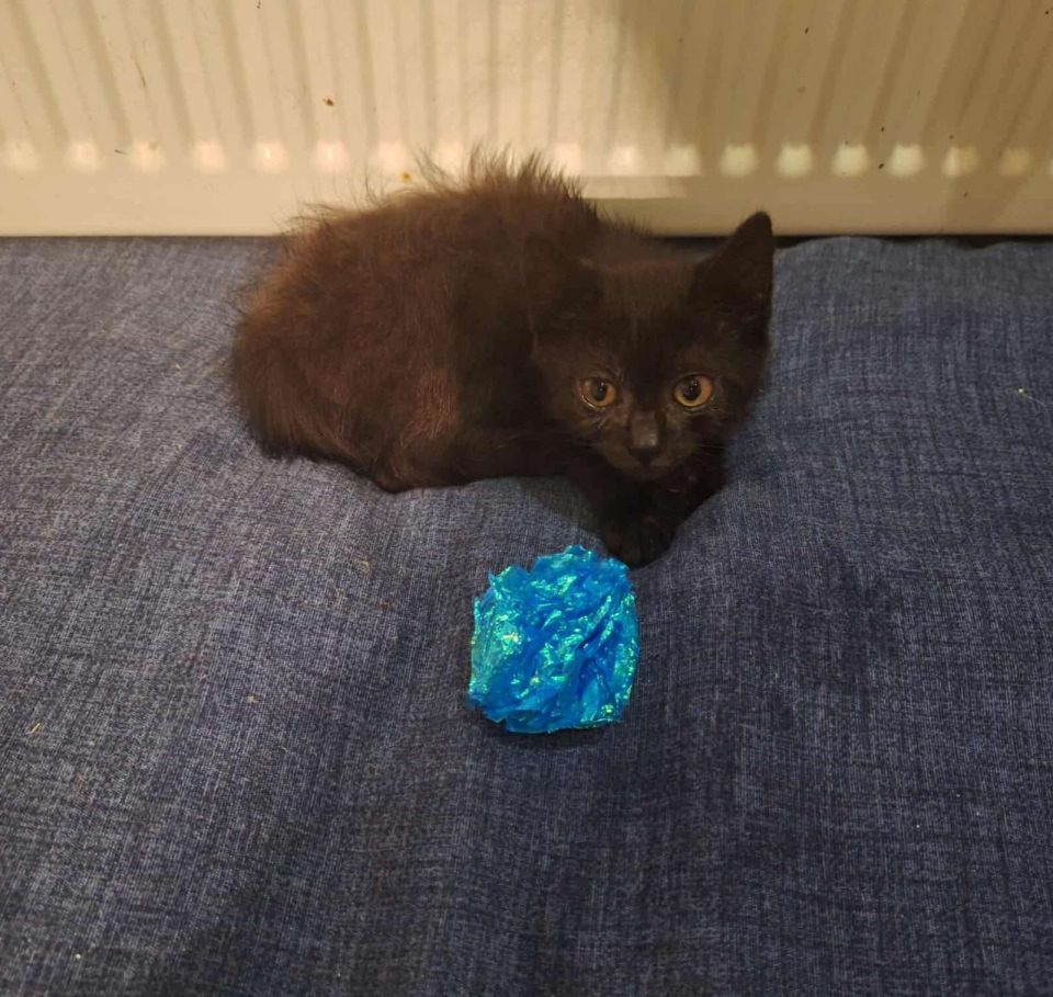 Je m’appelle Litchi, j’ai été retrouvée le 25 juillet sur un terrain, avec mes deux petites sœurs. J’étais alors très maigre, pesant à peine la moitié du poids de mes frangines… Mais grâce à ma famille d’accueil, je reprends doucement des forces. Ma maman d’accueil pensait d’abord que j’étais un petit garçon, mais après une visite chez le vétérinaire : surprise ! Je suis bien une petite fille