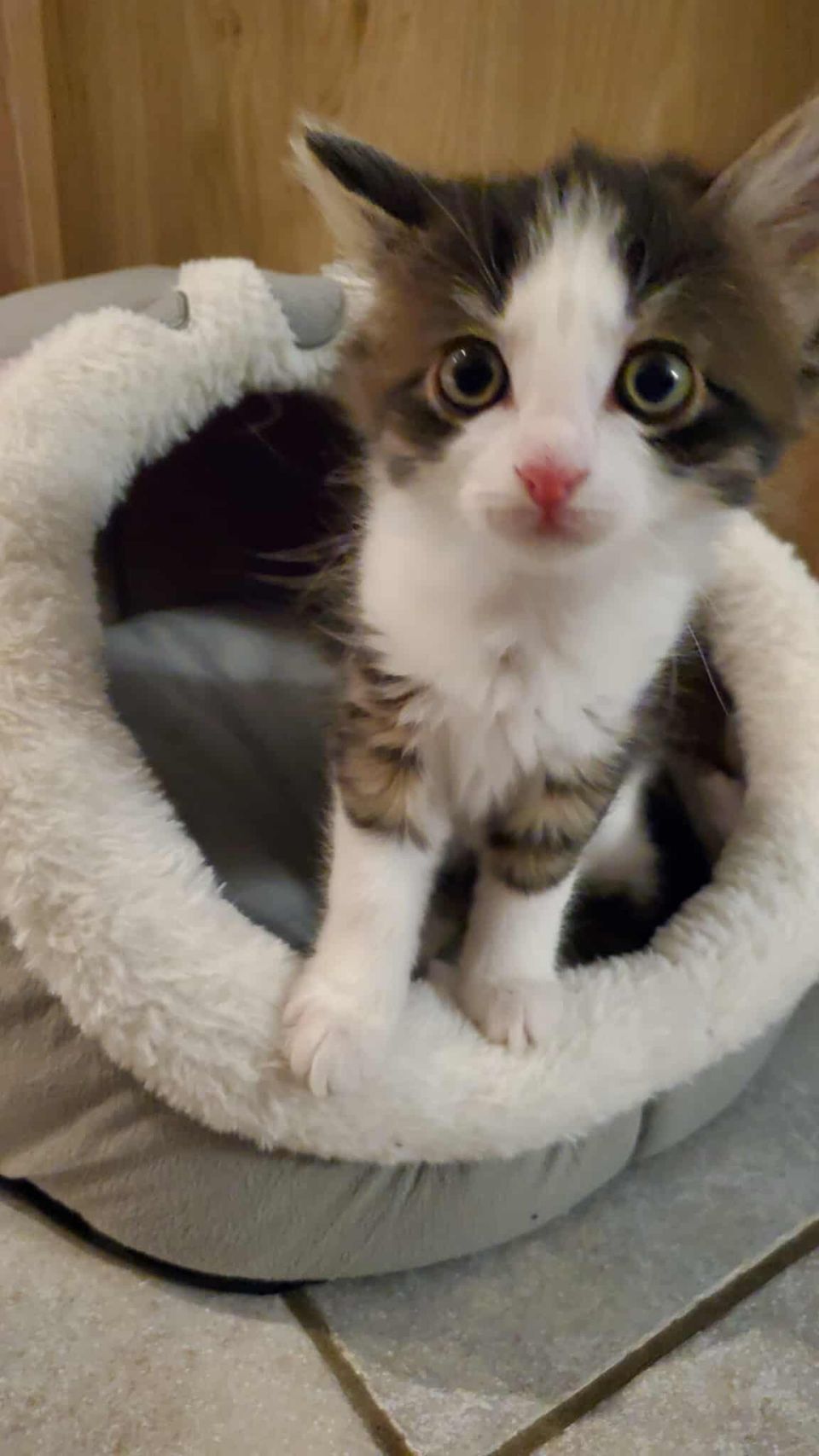 Bonjour, je m’appelle Loukie, née le 8 août (j’ai changé de sexe en cours de route 🤣), trouvée alors que je n’avais que 2 jours dans un jardin avec ma soeur. Je suis la seule à avoir survécu. Nous sommes restées trop longtemps dans le froid, sans être nourries. Je suis une guerrière, genre petite terreur même. Puisqu’il faut me décrire, je dois utiliser le préfixe hyper pour tout. Je suis hyperbelle 😁🥰, hyperdouce (je parle de mes poils seulement là, sinon je suis hyperbrute en fait), je suis hyperactive, hypercomique, hyperfolle aussi. N’oublions pas hypergourmande (A l’âge où je devais boire des biberons de 5 à 10 ml, je m’enfilais des 25ml en râlant de ne pas avoir assez), je suis démesurément grande pour mon âge d’ailleurs. Que ma nouvelle famille ait d’autres animaux ne me fait pas peur, en espérant qu’ils soient sympa quand même 🤪. Par contre, il faudra surveiller les petits-enfants, je suis vraiment une brute. Je vais avoir besoin d’espace pour me défouler et canaliser mon énergie. Je ne suis pas vraiment consciente du danger, il me faudra un environnement sécurisé. Sache que je n’étais pas encore sur le site, j’avais déjà énormément de demandes d’adoption, donc la bénévole va peut-être prendre du temps à répondre aux différents questionnaires. Il faudra se montrer patient et tolérant avec elle. Je suis à Fléron. Câlins à tous 😻