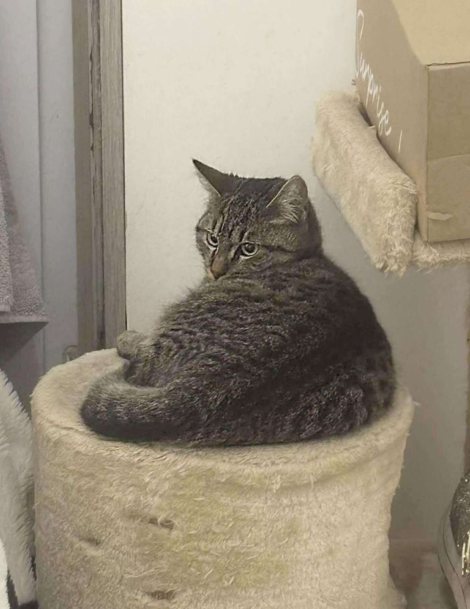 Ce chaton, appelé Murphy, a été livré à lui-même pendant un bon moment. Il est arrivé très effrayé. Il l’est toujours un peu, mais il aime la chaleur d’un foyer et la présence d’un être humain.