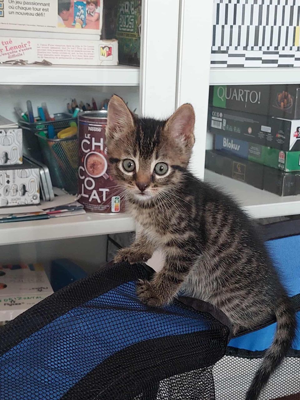 A l’adoption Bonjour, Je m’appelle Ollie et je suis né le 14/5. Je suis un chaton en pleine forme, je joue des heures, surtout avec mon frère, et je cours partout. Je vis aussi avec Panpam et Loki . Le soir je m’installe sur les genoux de ma maman d’accueil, et je ronronne comme un fou pendant de longs moments. Je me suis bien habitué aux chiens et je me frotte sur eux a l’occasion. Qui voudra bien m’adopter?