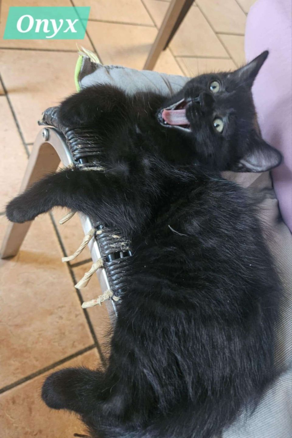 🐾 À l’adoption : Onyx au cœur pur 🐾 Onyx est un adorable chaton plein de vie, au pelage aussi doux que son caractère. Il fait partie d’une grande fratrie de 8 petits cœurs, et c’est l’un des plus sociables et joueurs de la bande ! Toujours partant pour une partie de jeu avec ses frères et sœurs, Onyx est un vrai fair-play : il aime s’amuser, mais toujours dans la bonne humeur. Après l’effort, place au réconfort : il adore les longues siestes bien méritées, souvent en boule contre un copain ou blotti contre vous pour un moment câlin. 🐾 Ce petit gourmand partage même sa gamelle sans rechigner ! Oui, Onyx est aussi généreux que mignon. Si vous cherchez un compagnon affectueux, joueur, sociable et facile à vivre, Onyx est fait pour vous. Il n’attend plus qu’un foyer aimant où continuer à grandir entouré d’amour et de jeux et d’un(e) copain(e) ou bien l’adoption en duo avec l’un de ses frères ou sœurs. Il est déjà propre et à l’aise dans un environnement familial enfants 5 ans minimum. Pour rencontre ce petit cœur pur il vis au Awirs.