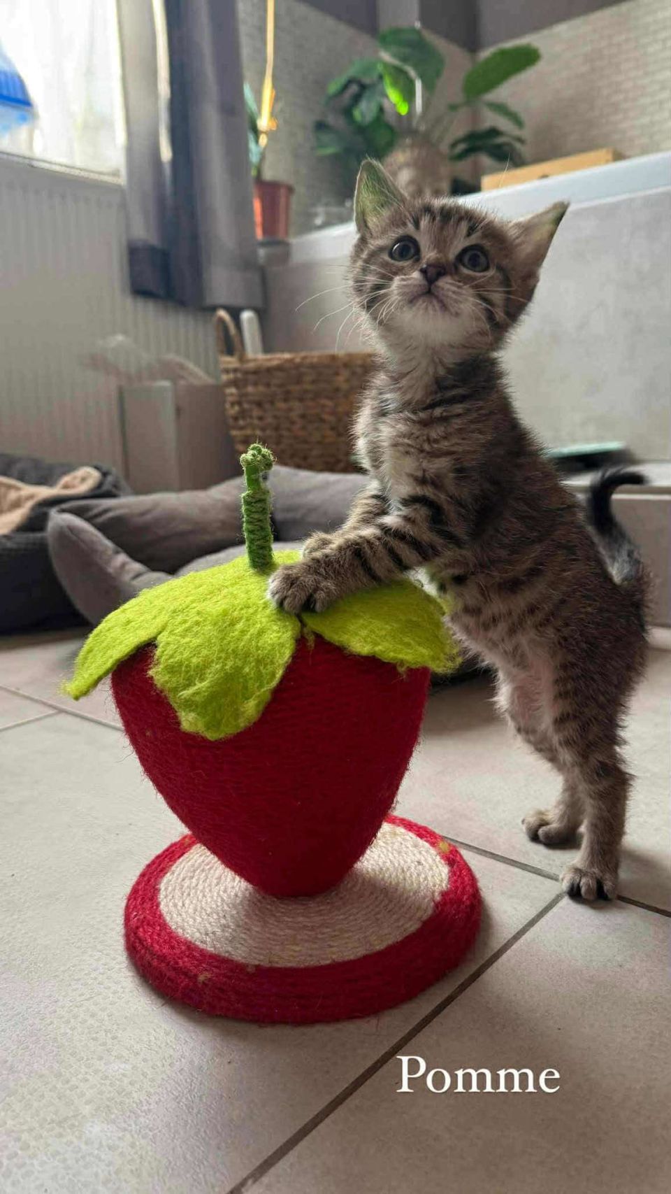 Caractère : Très vive, espiègle et toujours en mouvement, Pomme adore explorer, jouer et parfois… faire quelques petites bêtises typiques d’un chaton curieux. C’est aussi une grande gourmande, ce qui la rend encore plus attachante. ![]()