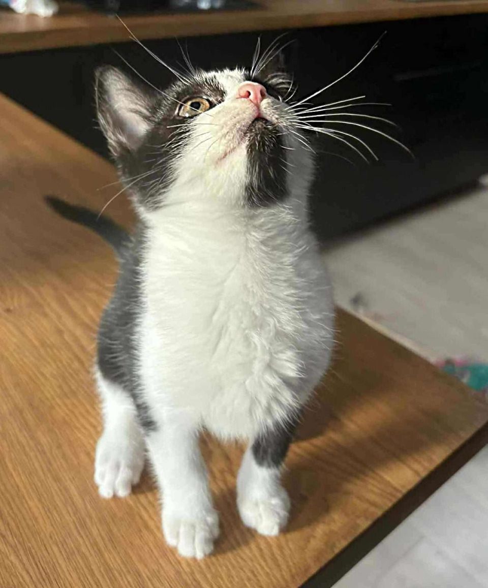 Je suis une vraie petite pile d’énergie ! J’adore jouer avec mes frères et sœurs, mais aussi avec les humains. Et quand je ne joue pas, je deviens une vraie boule d’amour : j’adore les caresses et je n’hésite pas à venir les chercher toute seule. Je m’entends très bien avec les chiens, les chats et les enfants. J’aimerais beaucoup avoir un copain chat ou une famille avec plein d’amour humain à partager