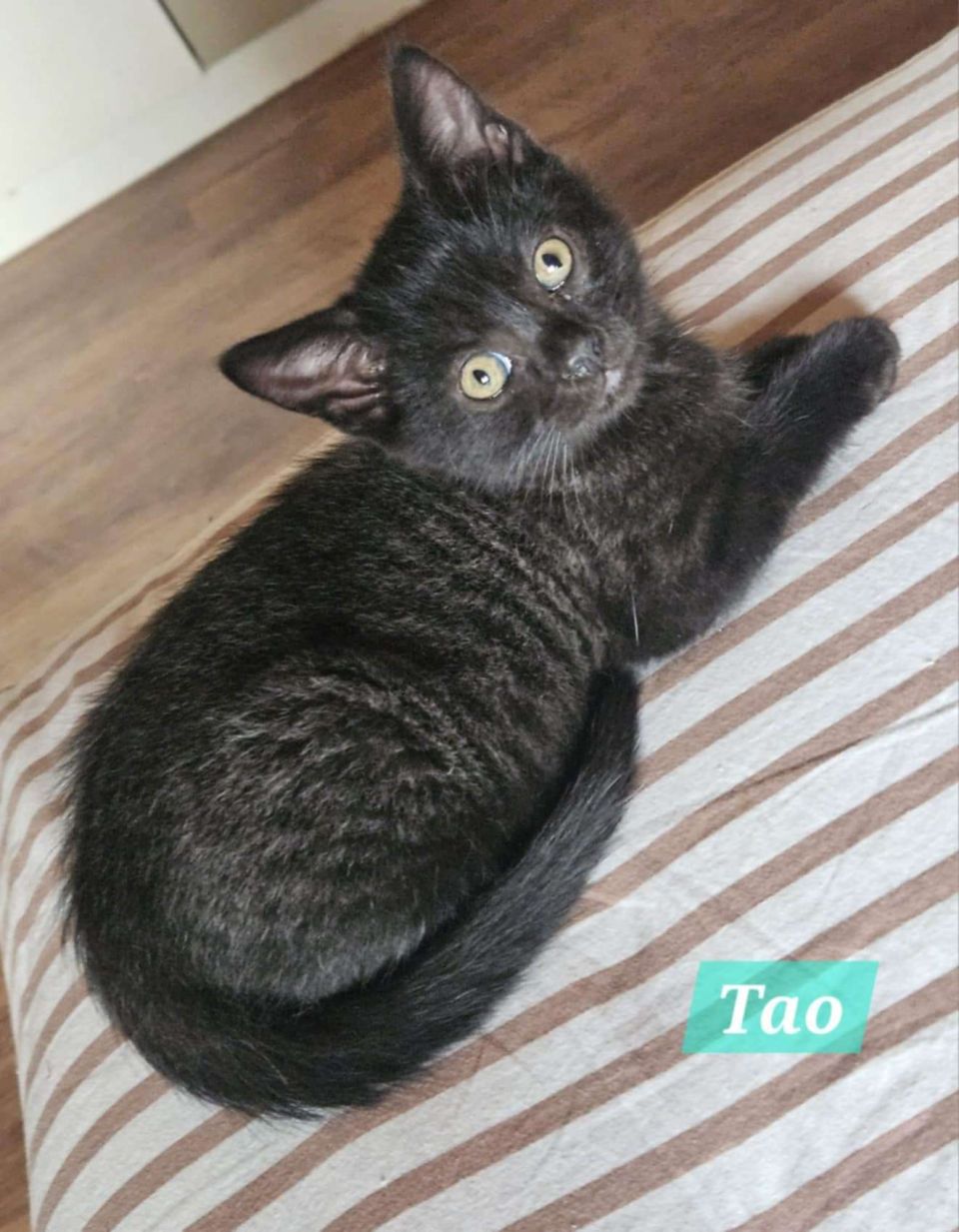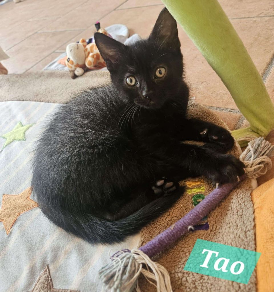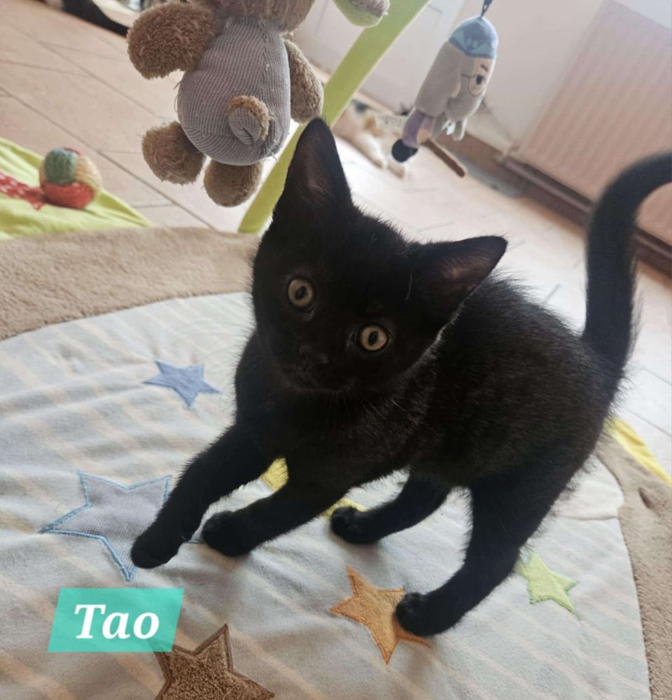 Tao est un adorable chaton noir tigré né au sein d’une fratrie de 8 petits cœurs. Parmi ses frères et sœurs, il se démarque par sa douceur et son besoin constant de tendresse. C’est un véritable petit pot de colle ! Tao a une habitude très attendrissante : il adore grimper sur sa maman d’accueil comme s’il montait sur un arbre à chat, pour ensuite se poser confortablement sur son épaule. C’est là qu’il se sent en sécurité, tout contre l’humain, à ronronner de bonheur. Très joueur, Tao raffole des parties de canne à pêche, surtout avec ses frères et sœurs avec qui il passe de longues heures à explorer et se dépenser. Quand vient l’heure du repos, il aime se blottir dans son panier douillet pour faire de longues siestes, probablement peuplées de rêves de jeux, de câlins et de croquettes. Tao recherche une famille douce et présente, prête à lui offrir beaucoup d’amour, avec un compagnon de jeu pour ne pas s’ennuyer ou bien l’adoption en duo avec l’un de ses frères ou sœurs. Il est déjà propre et à l’aise dans un environnement familial enfants 5 ans minimum. Pour rencontre ce petit Koala câlin il vis au Awirs