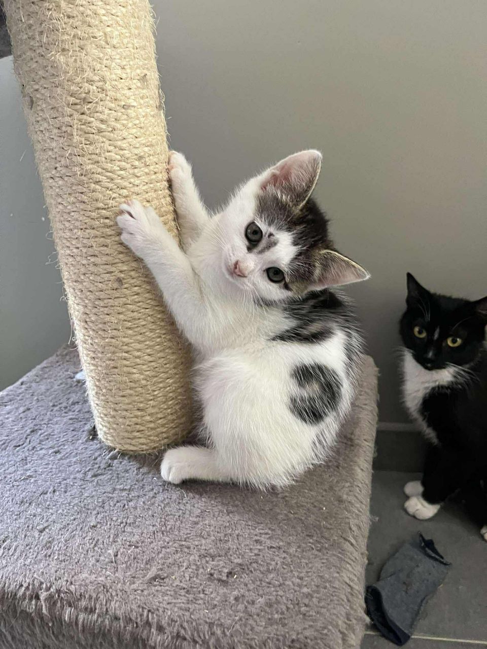 Moi c’est Tsunami, une mini tornade pleine de curiosité ! J’adore grimper, courir, renifler, fouiller… Je veux tout voir, tout comprendre, tout explorer ! Ma maman d’accueil adore mes petites taches noires sur le dos. C’est trop beau, il parait !