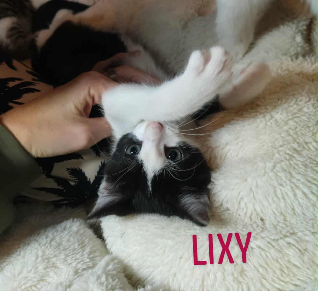 Lixy, c’est la chatonne noir et blanche qui a tout compris à la vie : 👉 être canaille juste ce qu’il faut… 👉 puis se transformer en chatonne calme et sage pile au moment où quelqu’un regarde. (Elle joue clairement en mode “double personnalité”, mais d’une manière très mignonne.) C’est un vrai caméléon émotionnel : elle s’adapte à tout, à tous, et elle aime absolument tout le monde. Oui, même ceux qui ne savent pas ouvrir un sachet de pâtée correctement. Comme toute la fratrie, Lixy a été biberonnée depuis ses 7 jours, donc elle est habituée aux humains, aux câlins, et à attirer toute l’attention quand elle veut quelque chose.