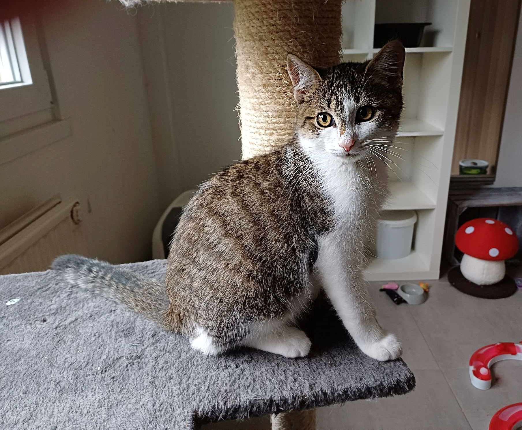 Je suis un chaton simple à vivre, équilibré et tranquille, qui s’adapte facilement à son petit monde. J’ai encore un peu peur des chiens et des grands chats, ils m’impressionnent un peu… mais avec de la patience et du respect, je finirai par comprendre qu’ils ne me veulent aucun mal ![]()