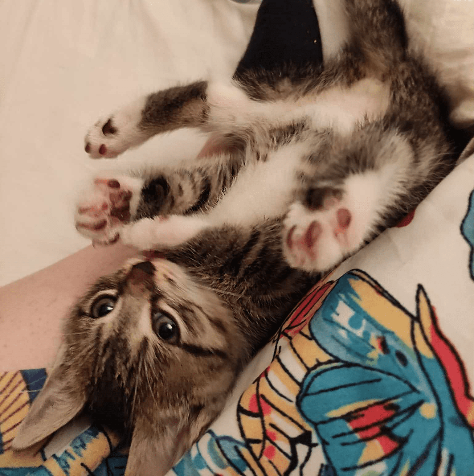 Archibald alias Archi : Notre maman est sauvage et sera remise sur son terrain lorsque nous seront partis. On a eu de la chance d’avoir pu être mis en famille d’accueil avec elle. Plutôt réservé, je dois prendre ma place parmi 3 sœurs qui ne me laissent aucun répit. Timoré j’aime les moments câlins et me ferai parfois discret. Une fois en sécurité, c’est la fête assurée. Comme tous les chatons je préfère surtout les jeux pour le moment 😉 . Je vous attends pour découvrir encore plus les humains.