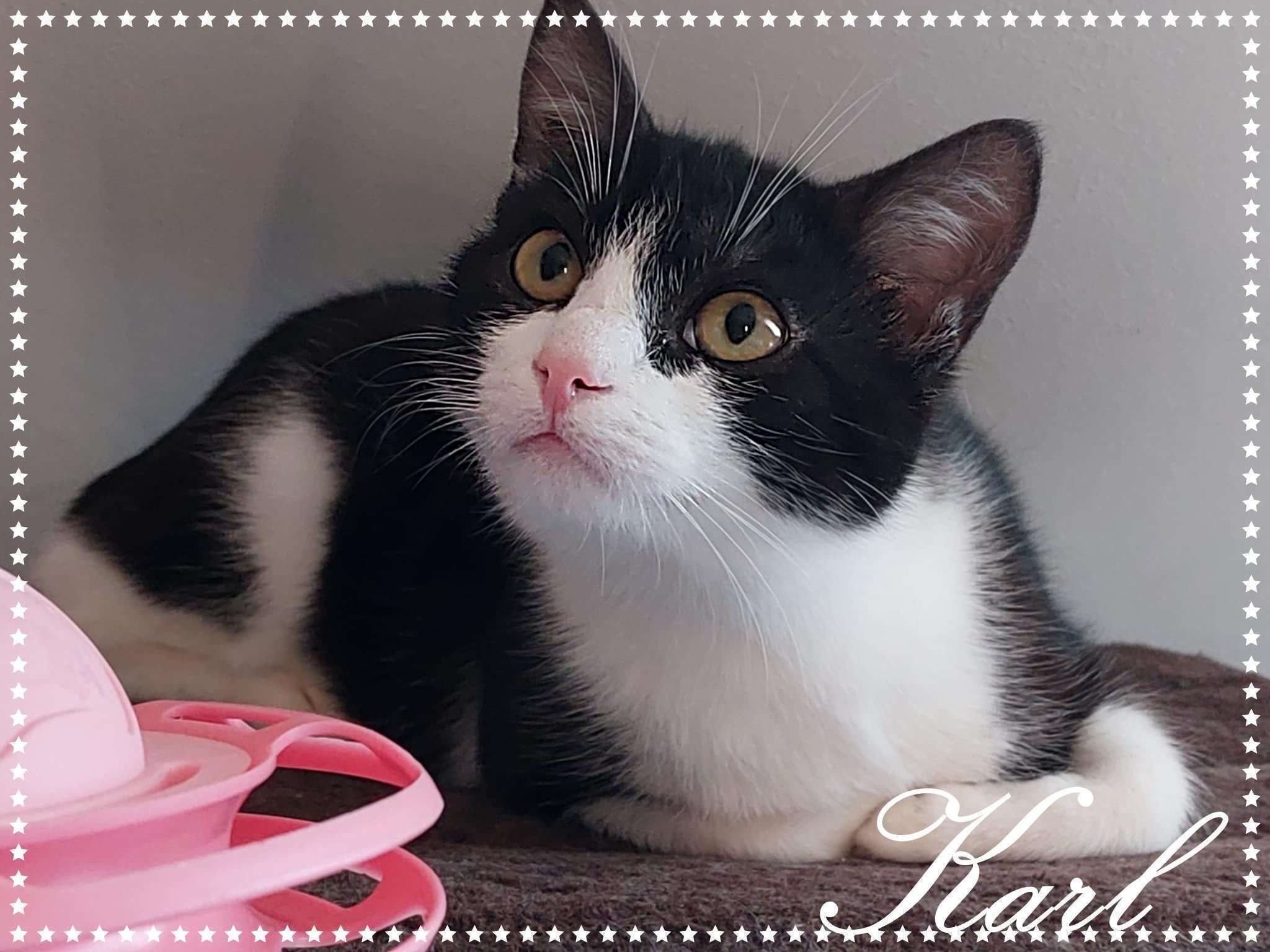 Salut ! Je suis Bidule, j’ai été biberonné depuis mes 3 semaines et pour moi un être humain c’est synonyme de câlins, de nourriture et de sécurité. J’ai un frère Kali et une soeur Ficelle.